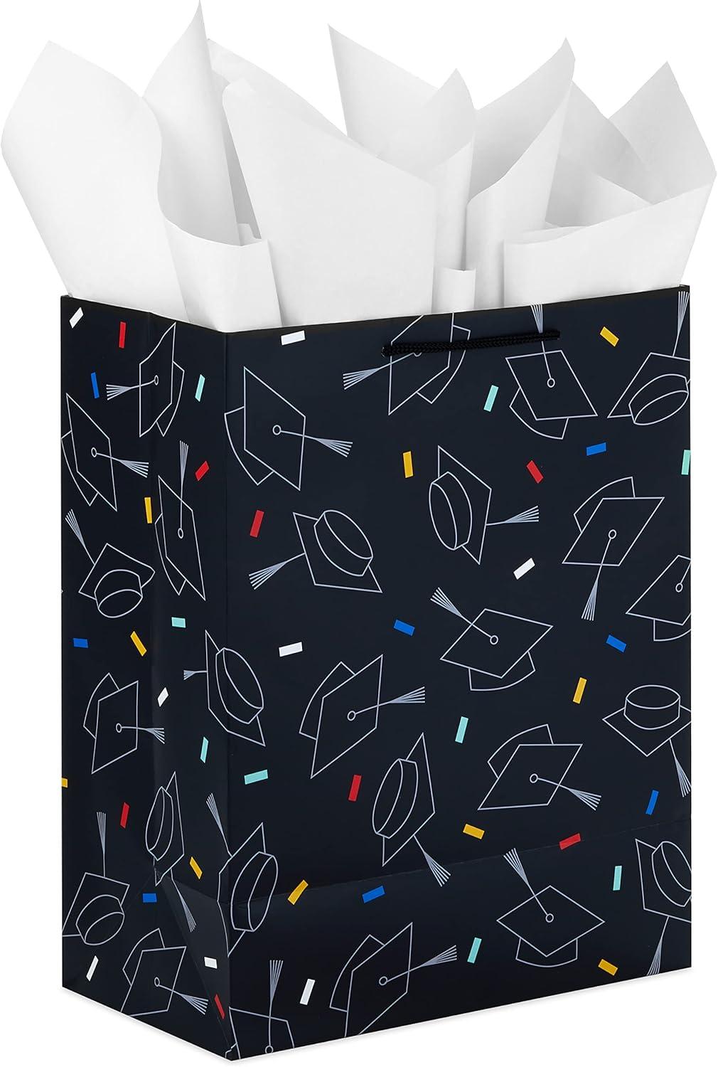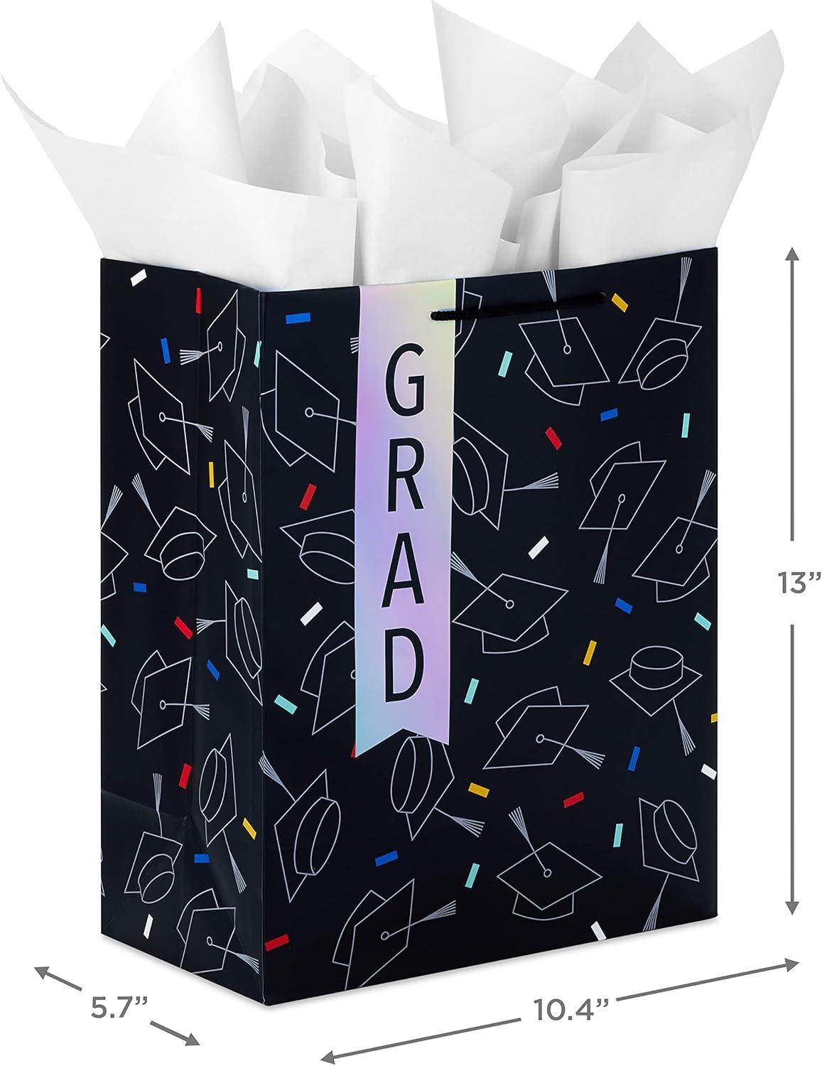 Hallmark 13″ Large Graduation Gift Bag with Greeting Card and Tissue Paper (Black, Red, Blue, Holographic) for High School, College, Law School, Nursing, Kindergarten(Holographic Black Red Blue)