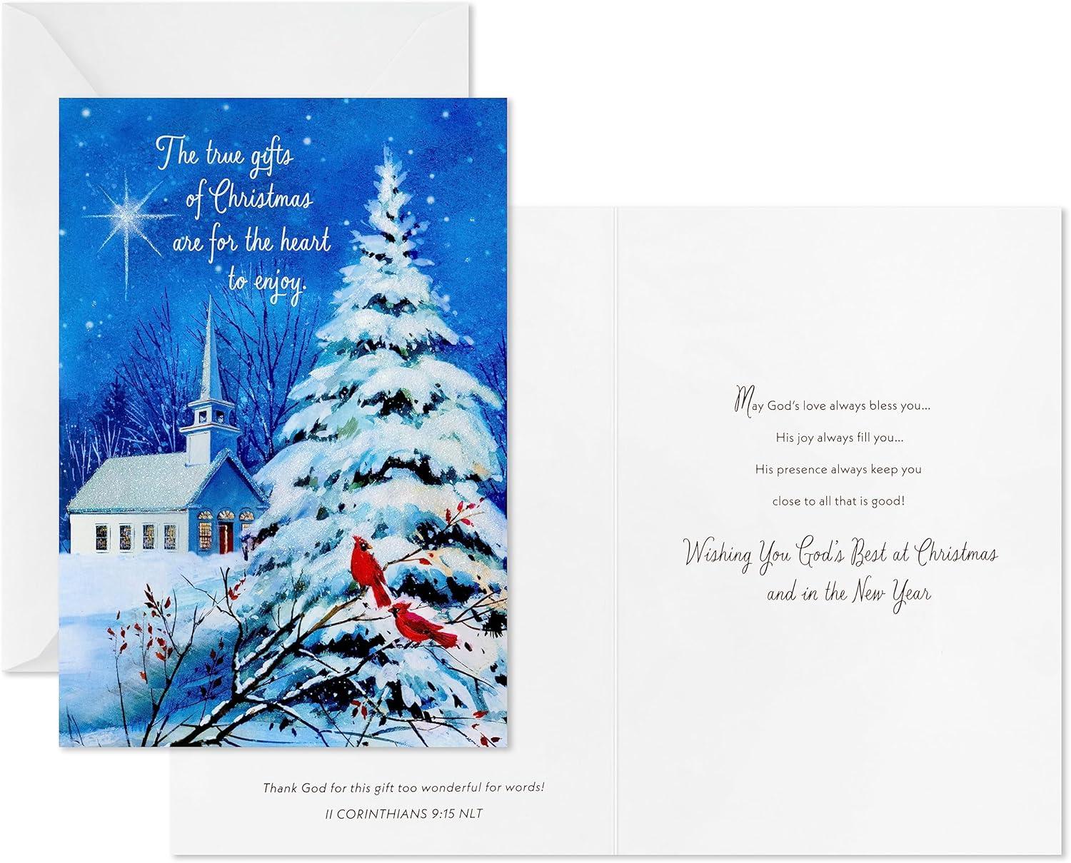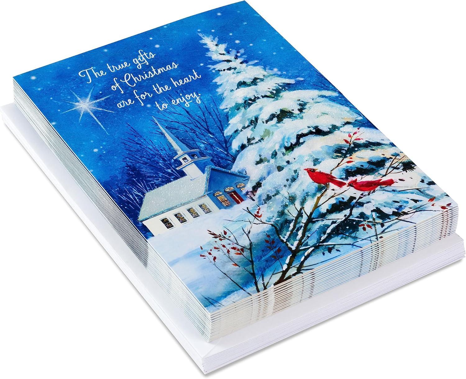 Dayspring Religious Christmas Cards (16 Cards and Envelopes) Winter Church(Winter Church Religious Holiday Cards)