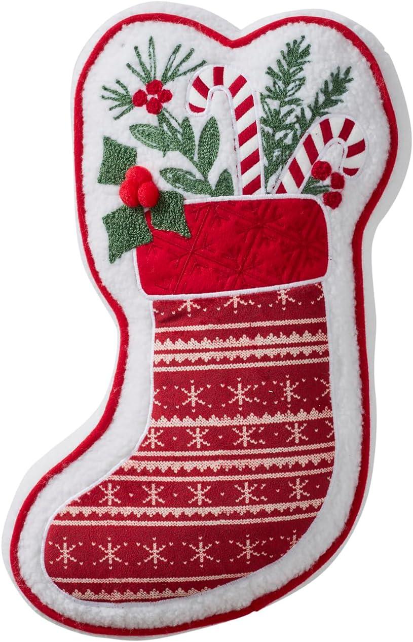 Hallmark – Decorative Throw Pillow for Couch or Bed, Holiday Home Décor, 8″ x 16″, (Sherpa Stocking, Red)(Stocking)