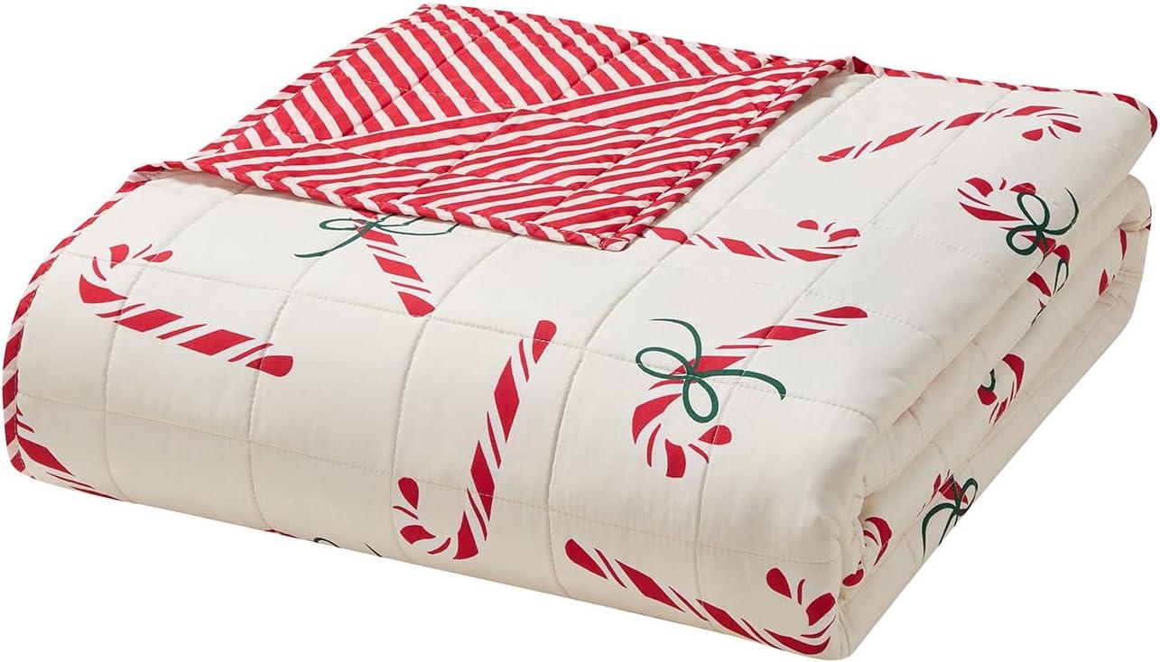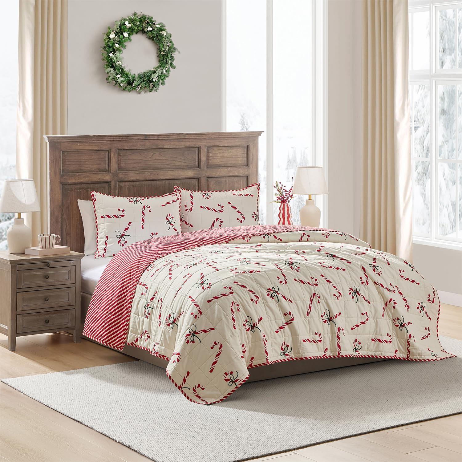 Hallmark – Full/Queen Quilt, 3-Piece Holiday Quilt Set with Shams, Reversible Quilt (Multi Candy Canes, Full/Queen)(Candy Canes)