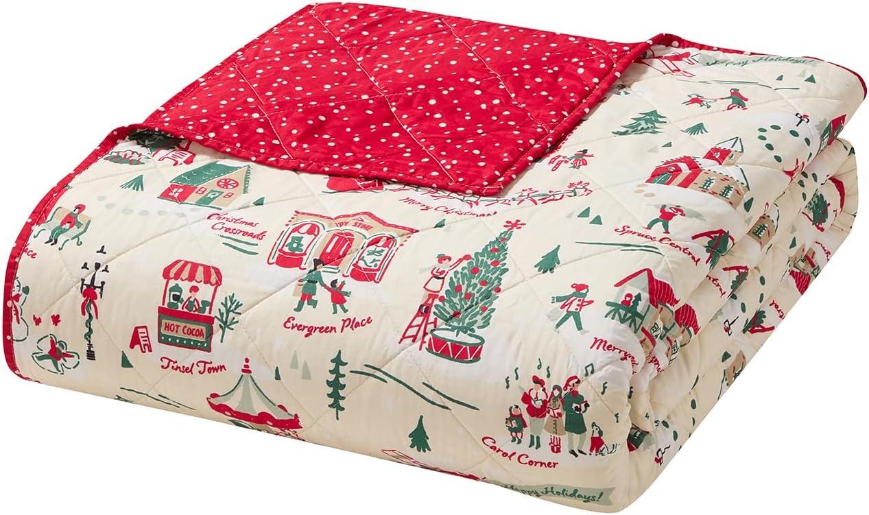 Hallmark – Full/Queen Quilt, 3-Piece Holiday Quilt Set with Shams, Reversible Quilt (Multi Candy Canes, Full/Queen)(Christmas Village)