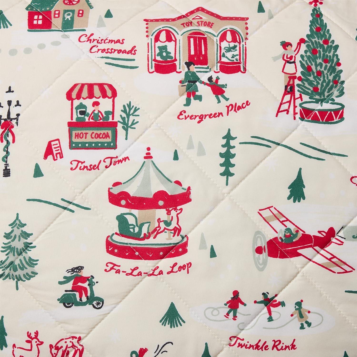 Hallmark – Full/Queen Comforter, 4-Piece Holiday Comforter Set with Shams and Decorative Pillow (Red Toile, Full/Queen)(Joy to Your World Green)