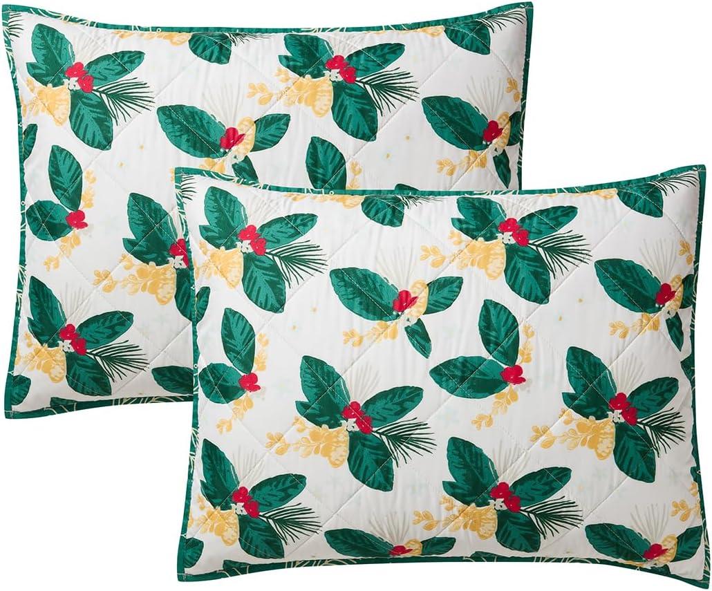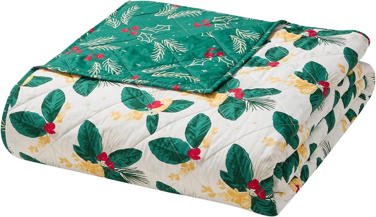 Hallmark – Full/Queen Quilt, 3-Piece Holiday Quilt Set with Shams, Reversible Quilt (Multi Candy Canes, Full/Queen)(Green Poinsettia)