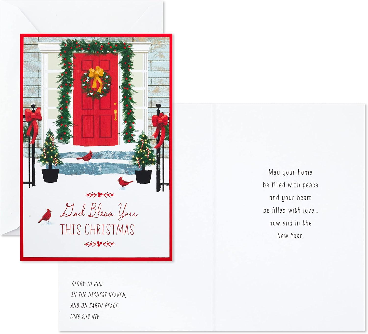 DaySpring Religious Christmas Cards, God Bless You (6 Cards with Envelopes)(Red White Green)