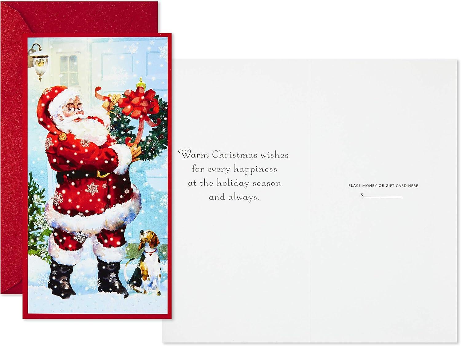 Hallmark Pack of Money or Gift Card Holders, Christmas Wishes (10 Cards with Envelopes)(Santa and Dog)