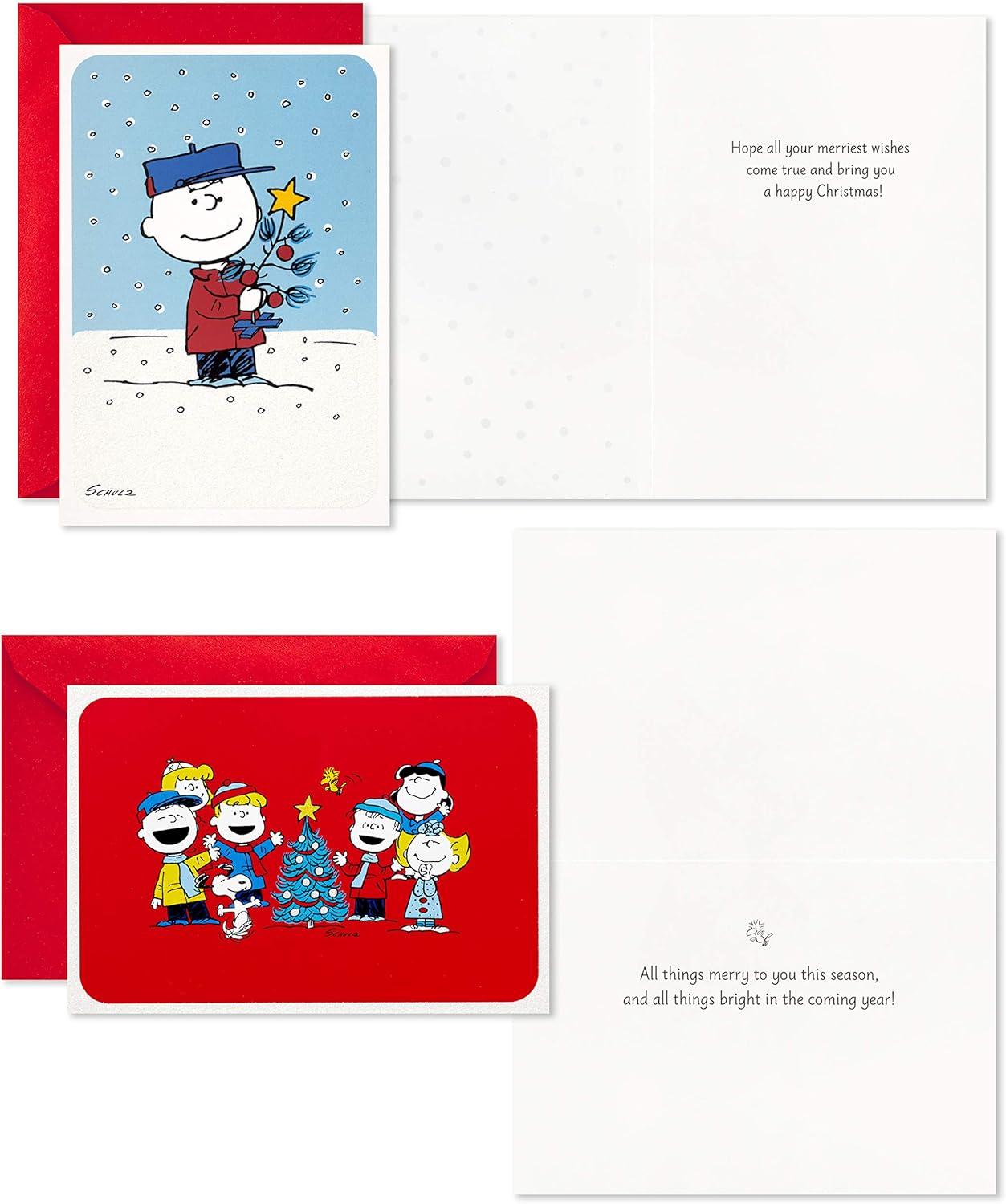 Hallmark Peanuts Christmas Cards Assortment, Snoopy and Woodstock (6 Cards with Envelopes, 2 Designs)(Snoopy Christmas Tree 10 Cards with Envelopes)