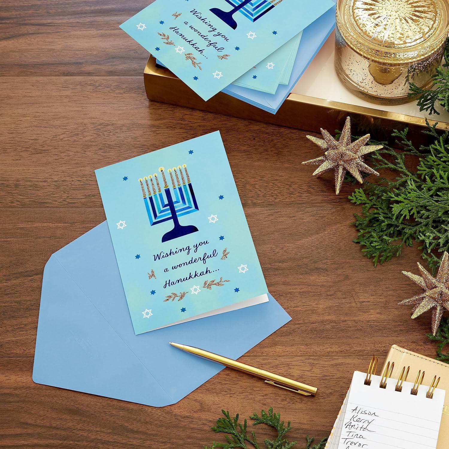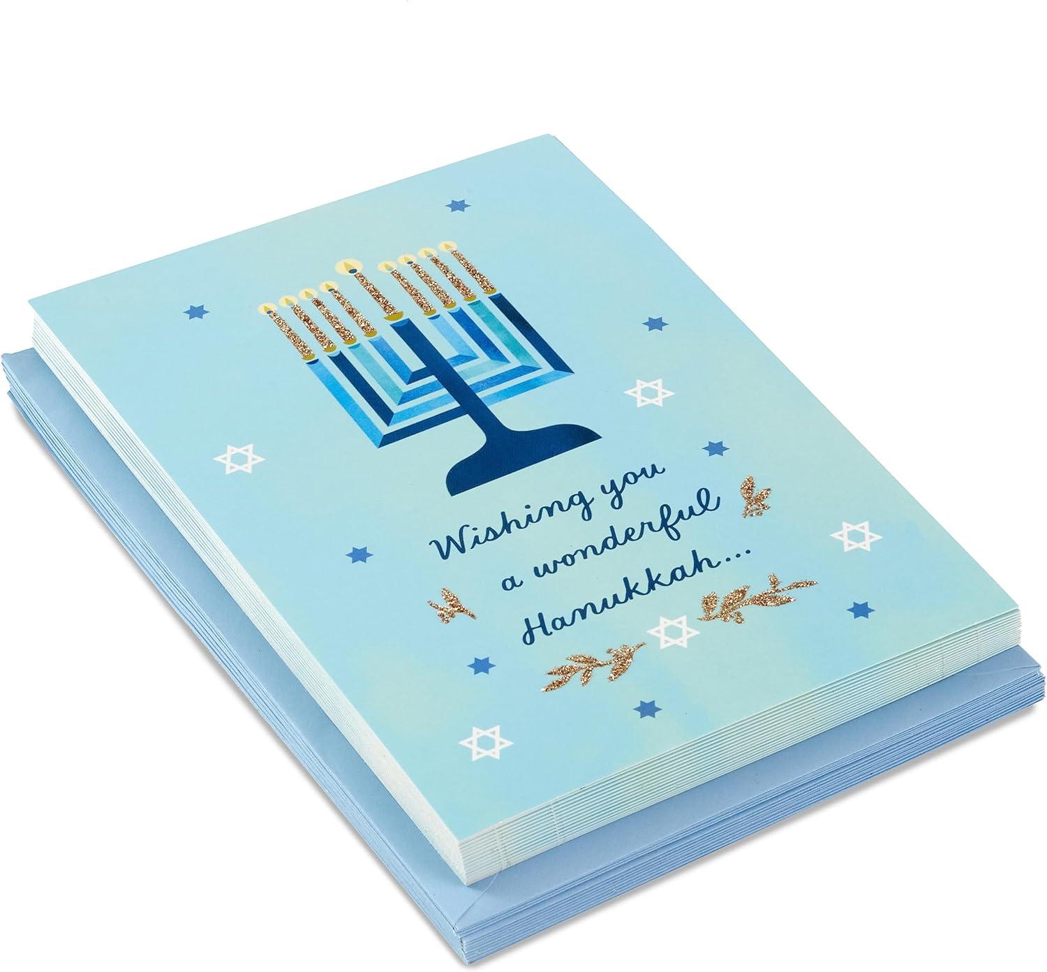 Hallmark Tree of Life Hanukkah Cards, Star of David (6 Cards with Envelopes)(Blue Menorah Pack of 6)