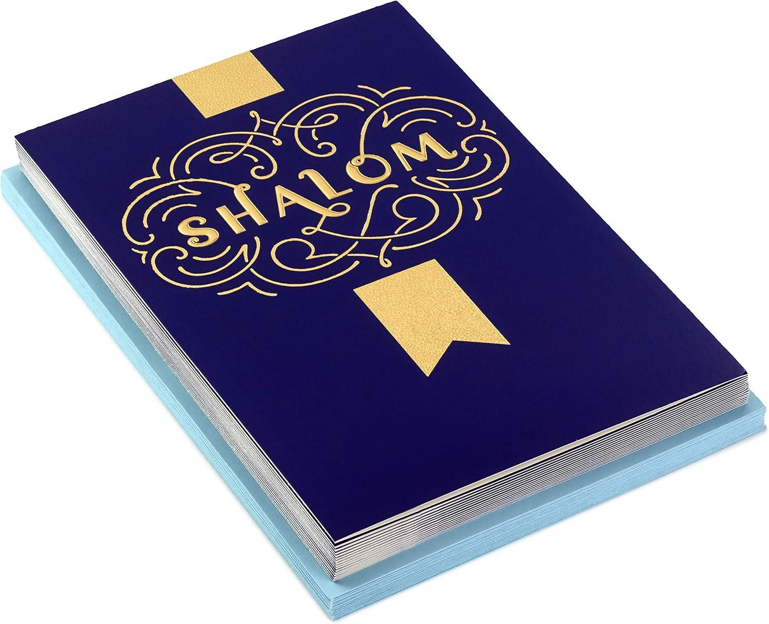 Hallmark Tree of Life Bulk Hanukkah Boxed Cards (40 Cards and 40 Envelopes) Blue with Gold Foil Menorahs, Star of David, Peace Dove(Modern Menorah)