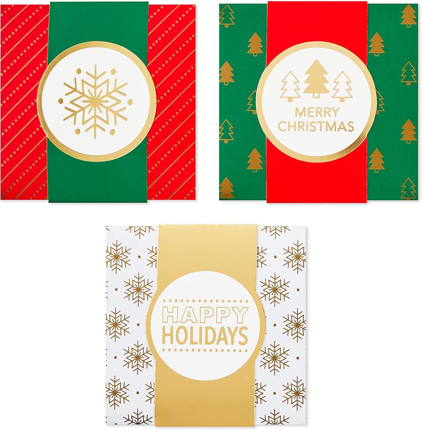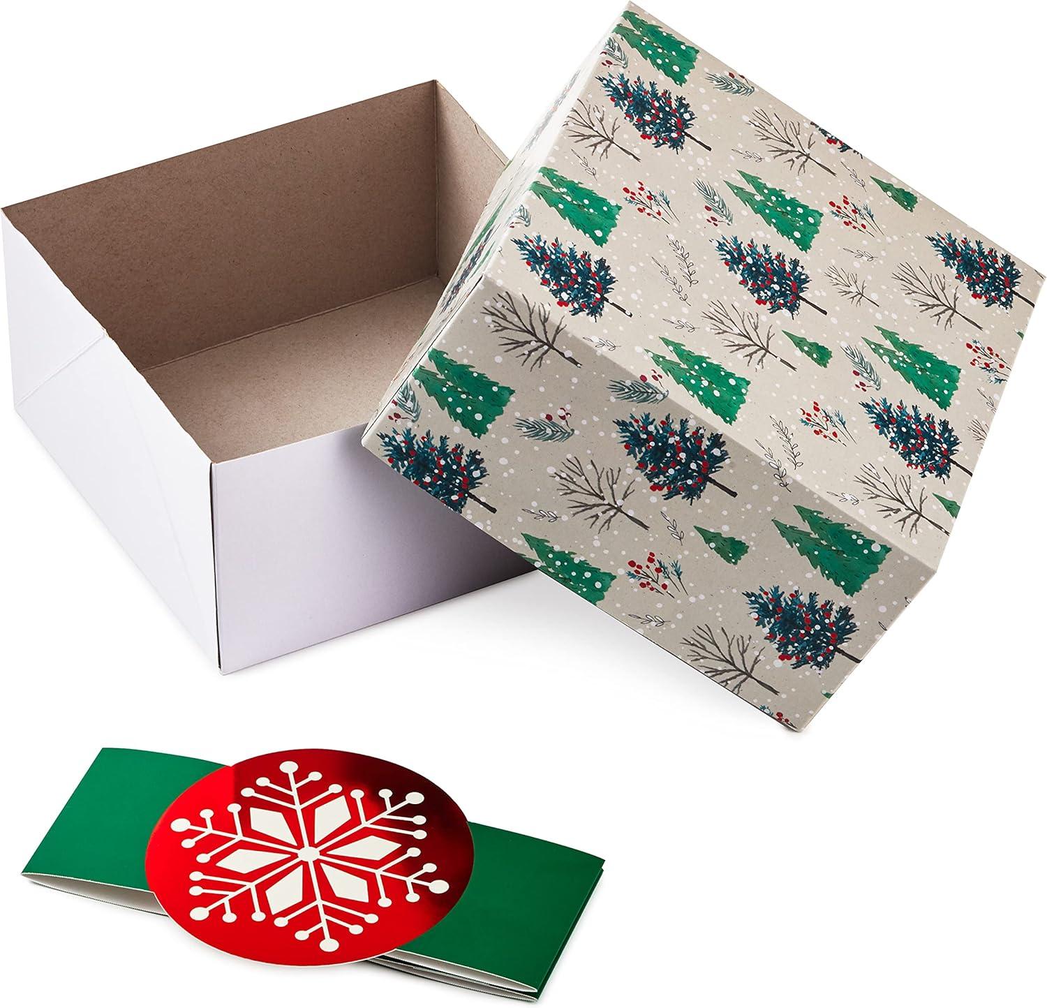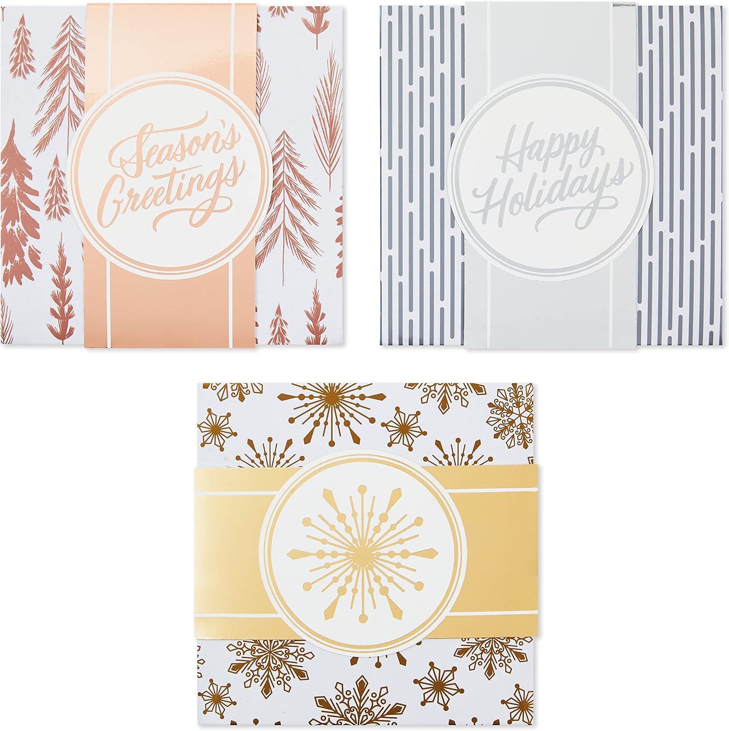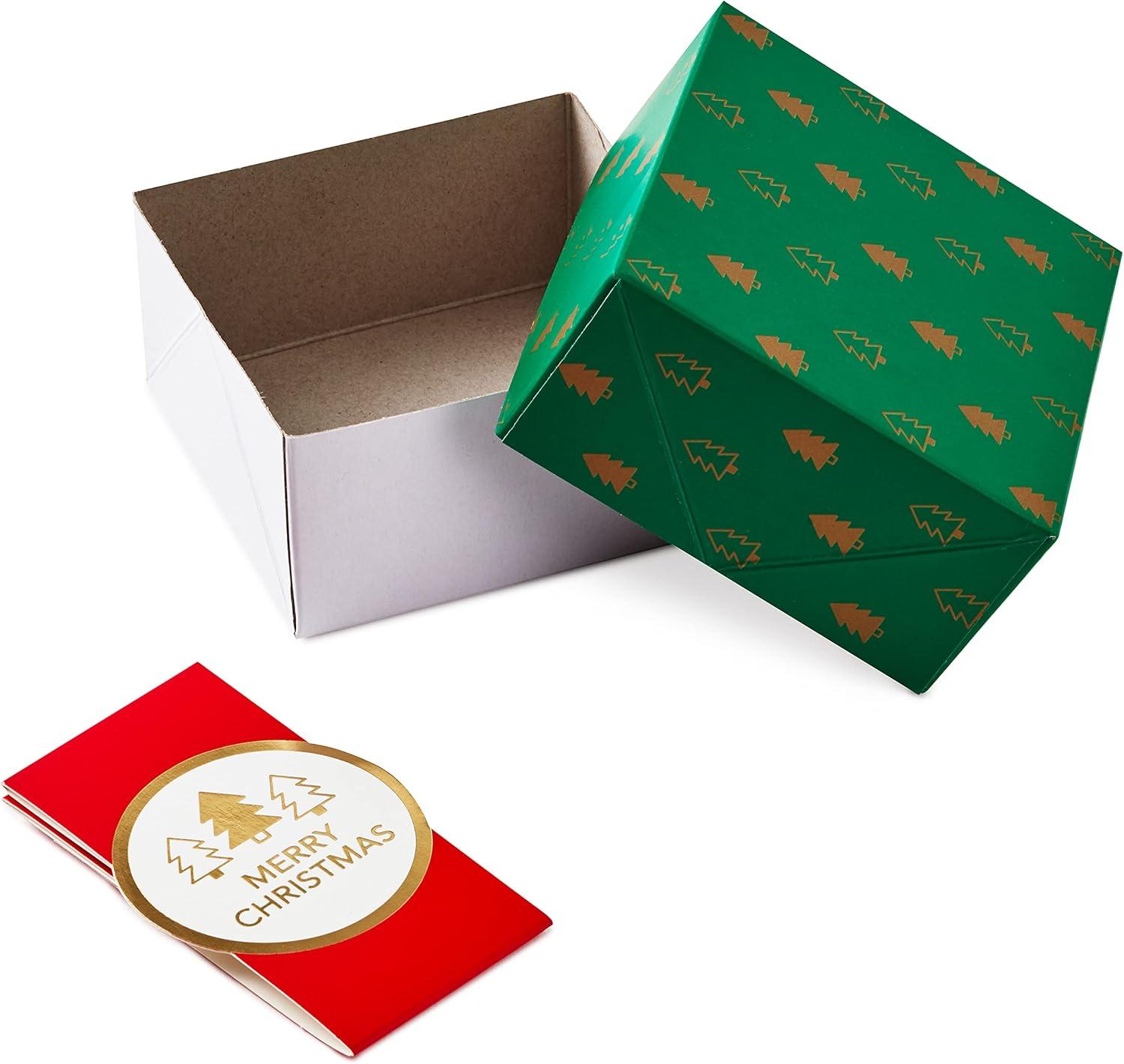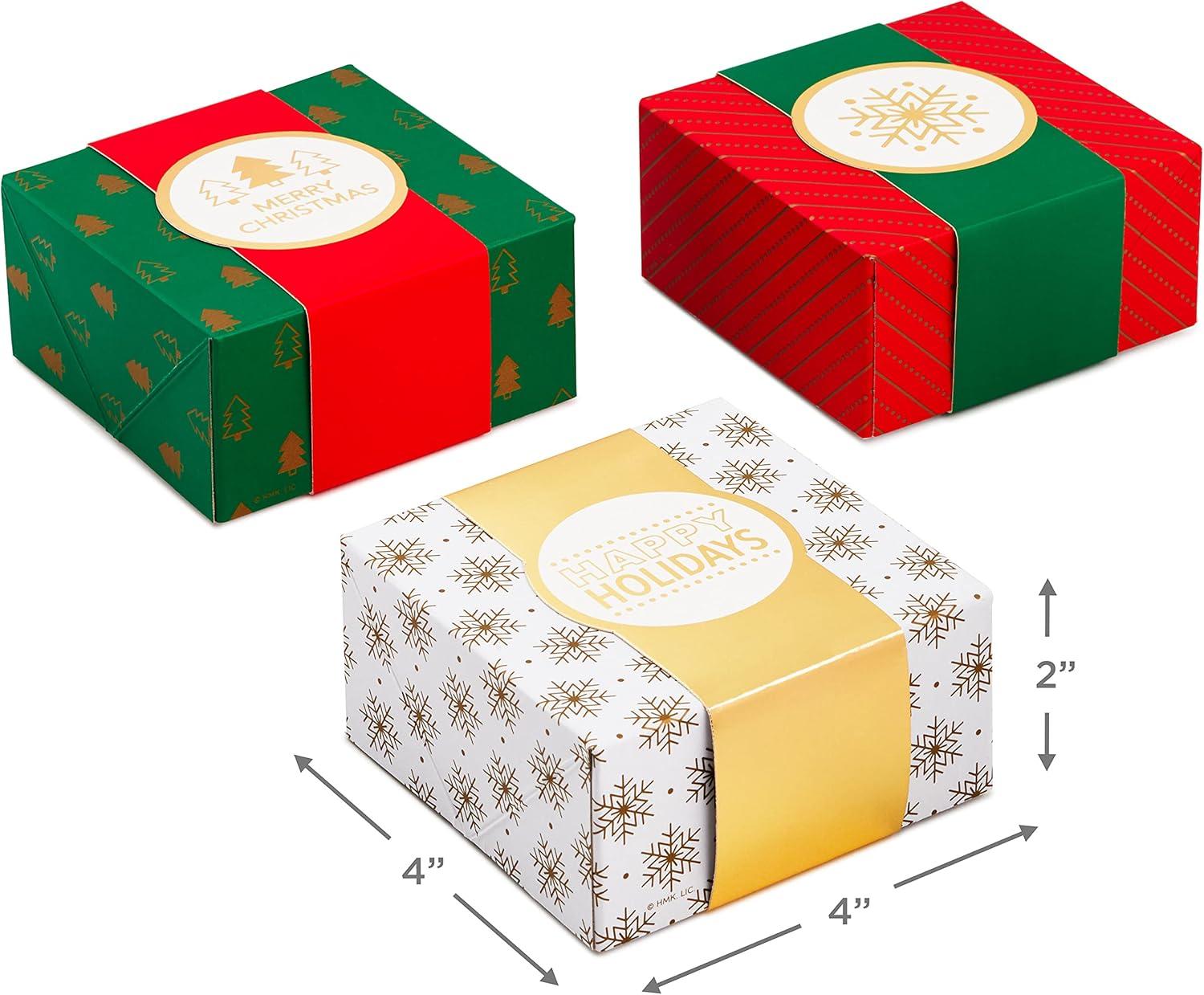 Hallmark 0005XBC1126 Holiday Set of 3 with Wrap Bands for Christmas, Hanukkah, Weddings Small Gift Boxes, Paper, Metallic Rose Gold Silver, Trees, Snowflakes(White Green Red)