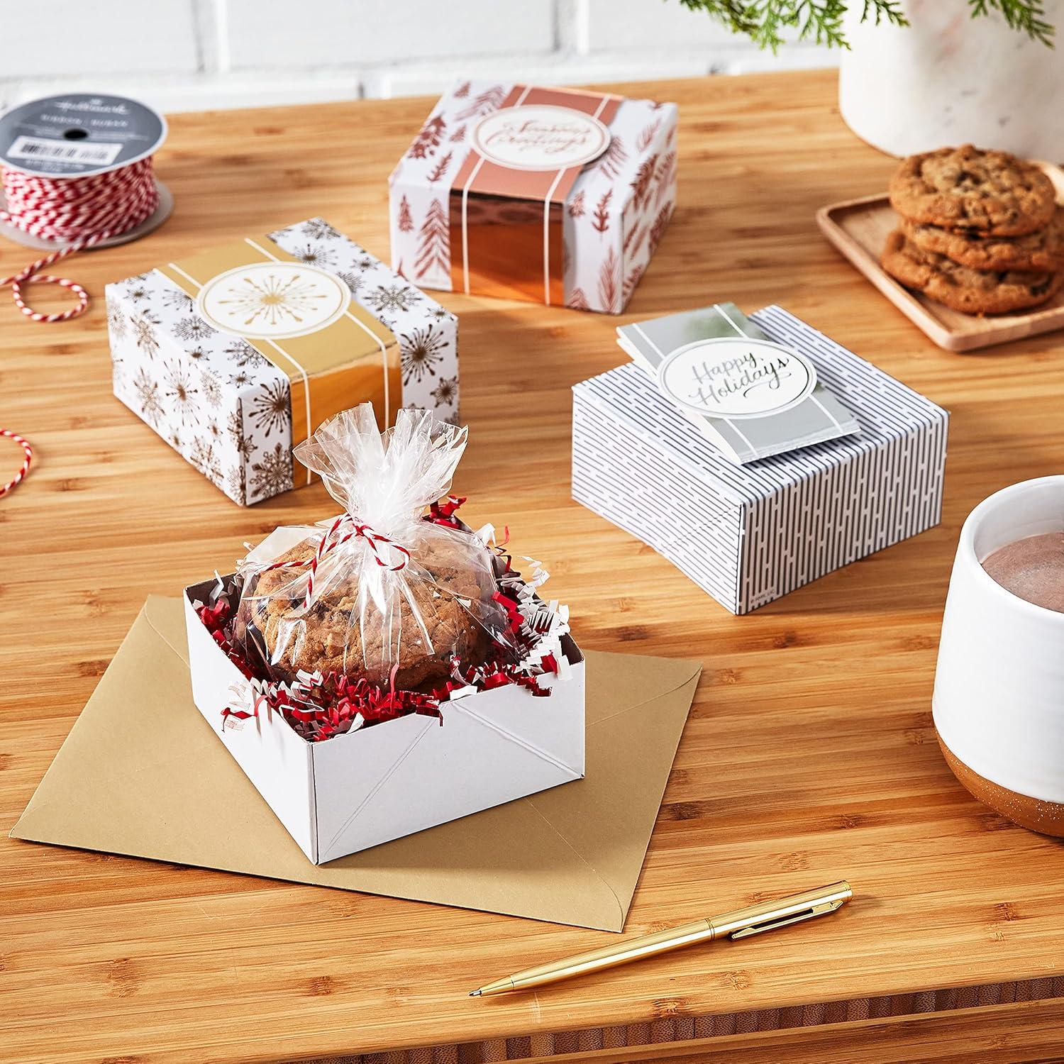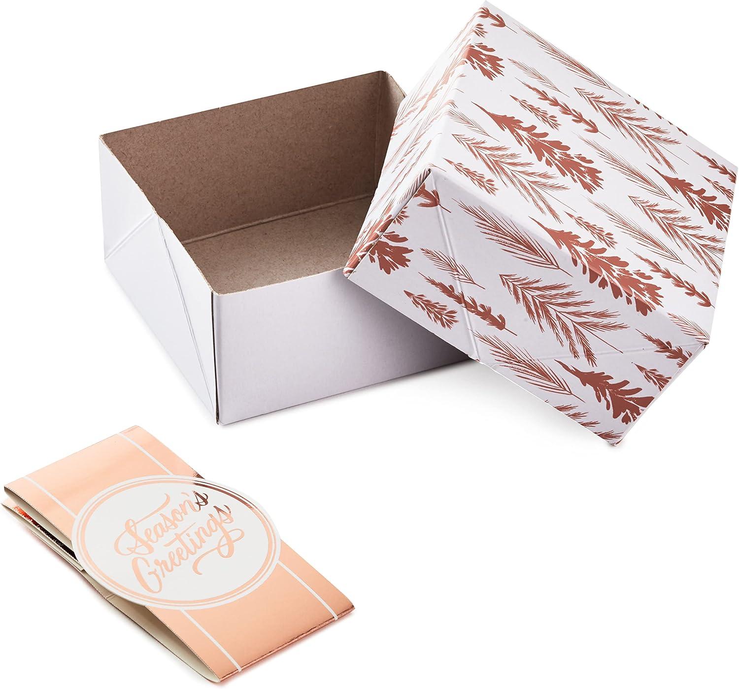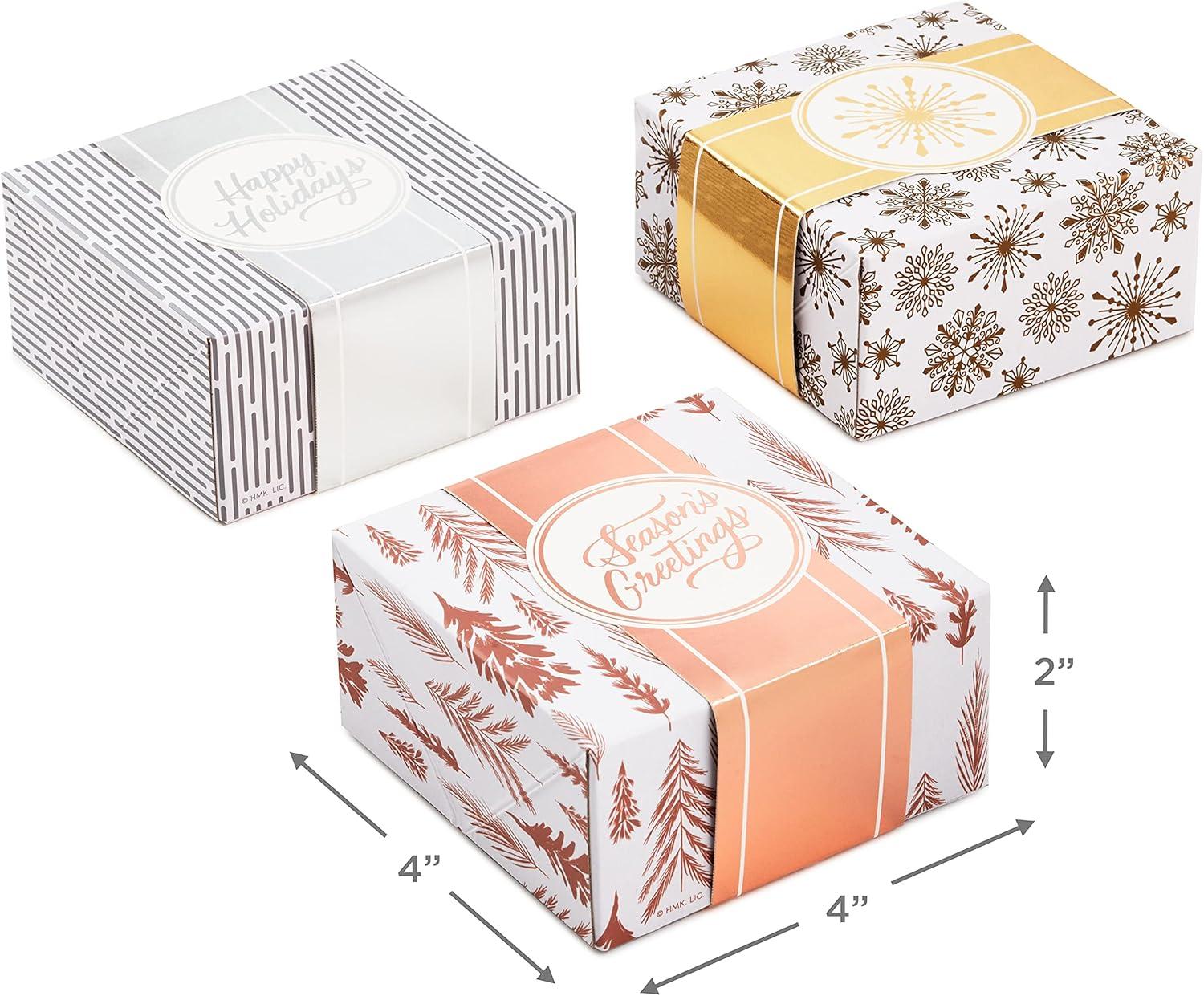 Hallmark 0005XBC1126 Holiday Set of 3 with Wrap Bands for Christmas, Hanukkah, Weddings Small Gift Boxes, Paper, Metallic Rose Gold Silver, Trees, Snowflakes(White Silver Gold Rose Gold)