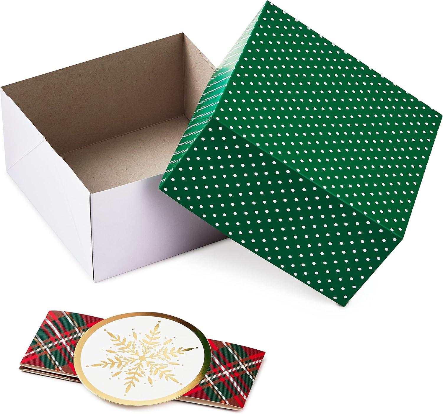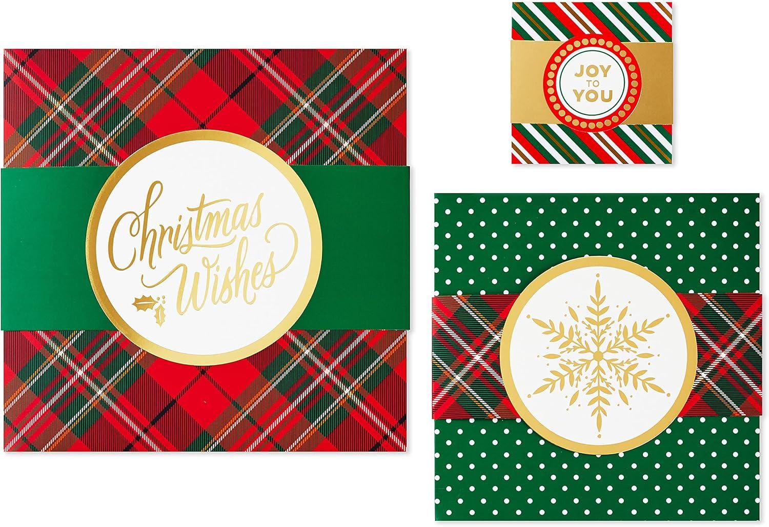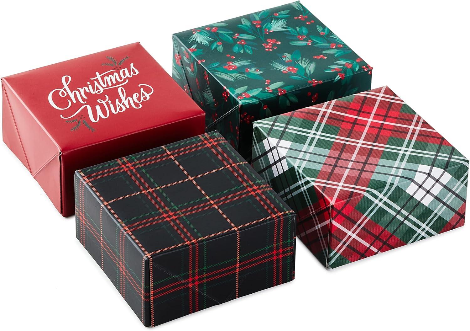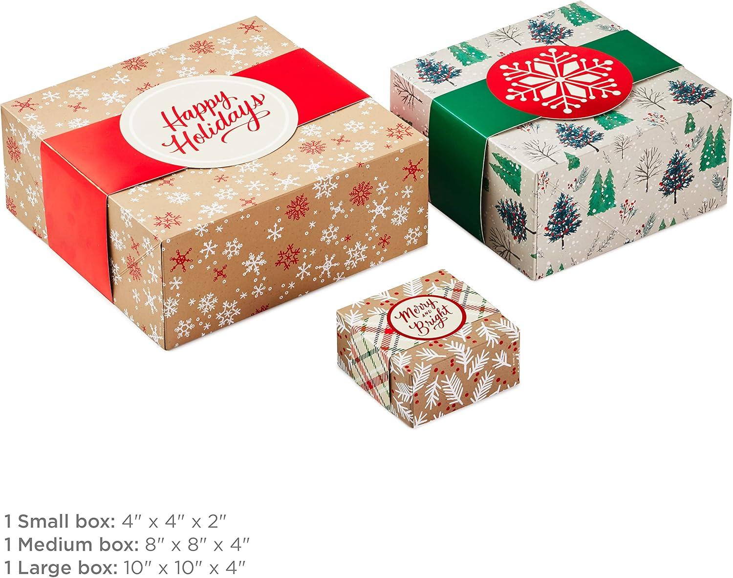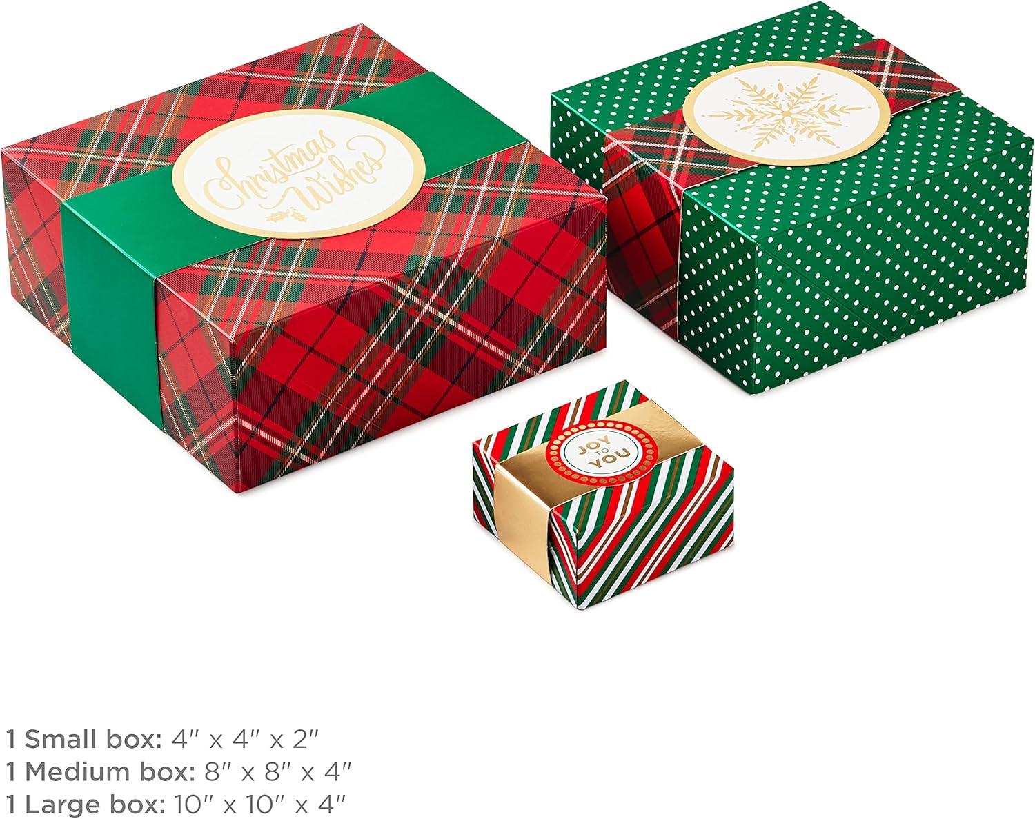 Hallmark 0005XBC1126 Holiday Set of 3 with Wrap Bands for Christmas, Hanukkah, Weddings Small Gift Boxes, Paper, Metallic Rose Gold Silver, Trees, Snowflakes(Christmas Wishes Holly Plaid)