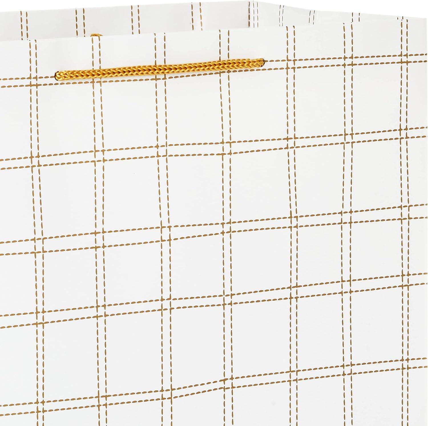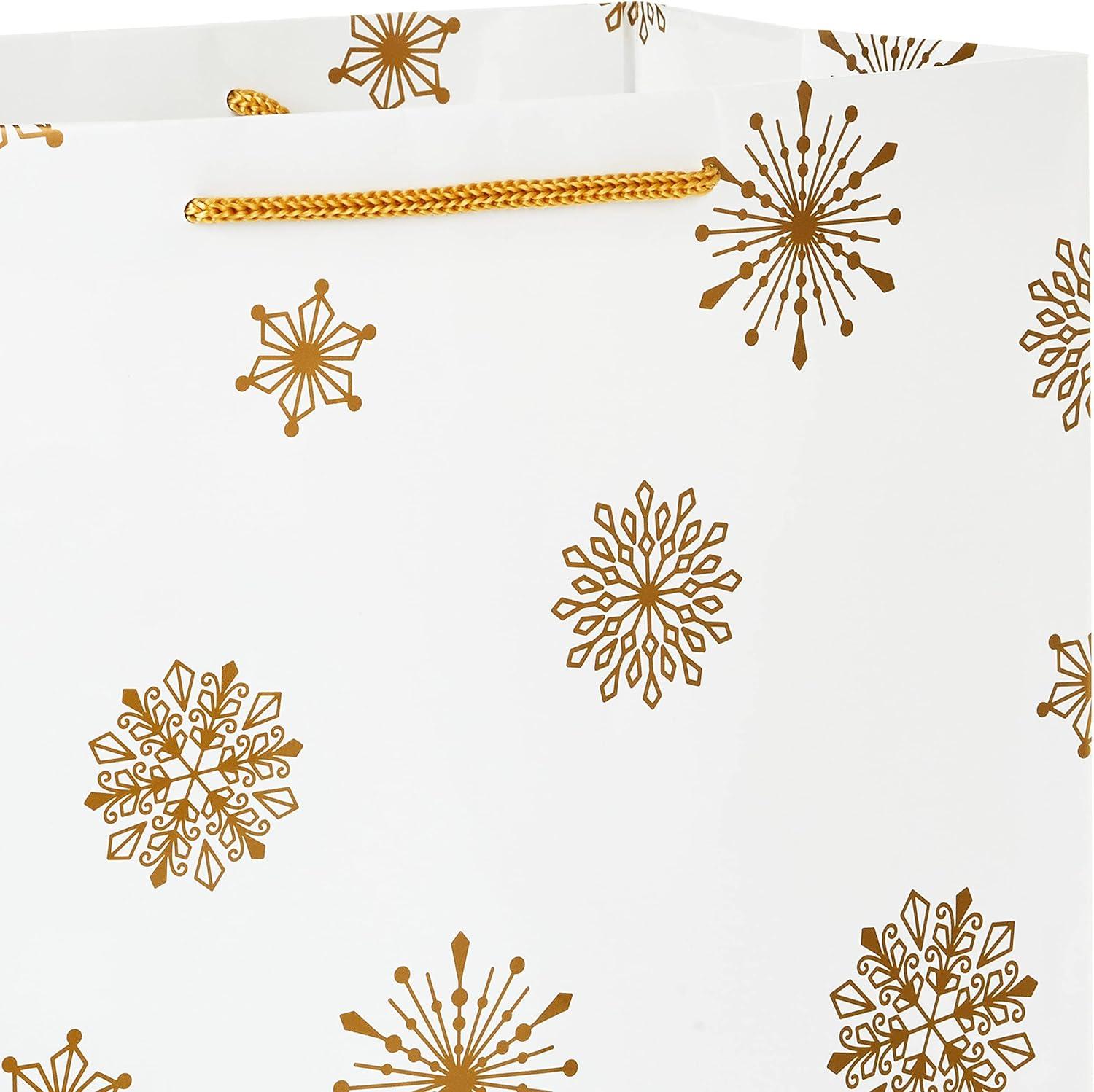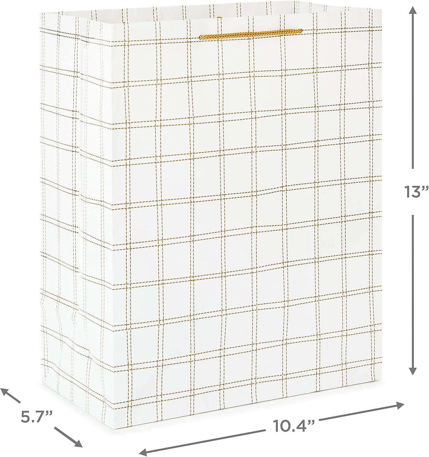 Hallmark 13″ Christmas Gift Bags (4 Large White Bags: Gold Snowflakes, Gold Plaid) for Holiday Parties, Winter Weddings, Bridal Showers