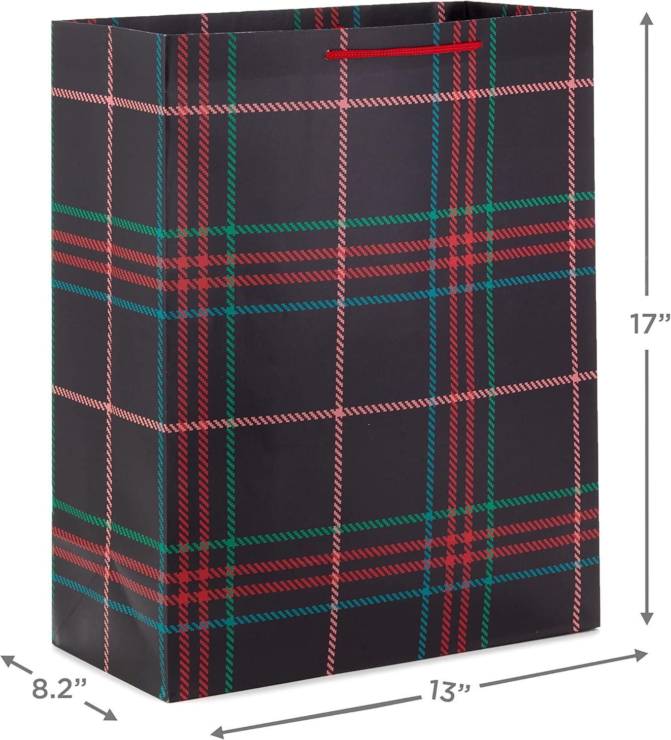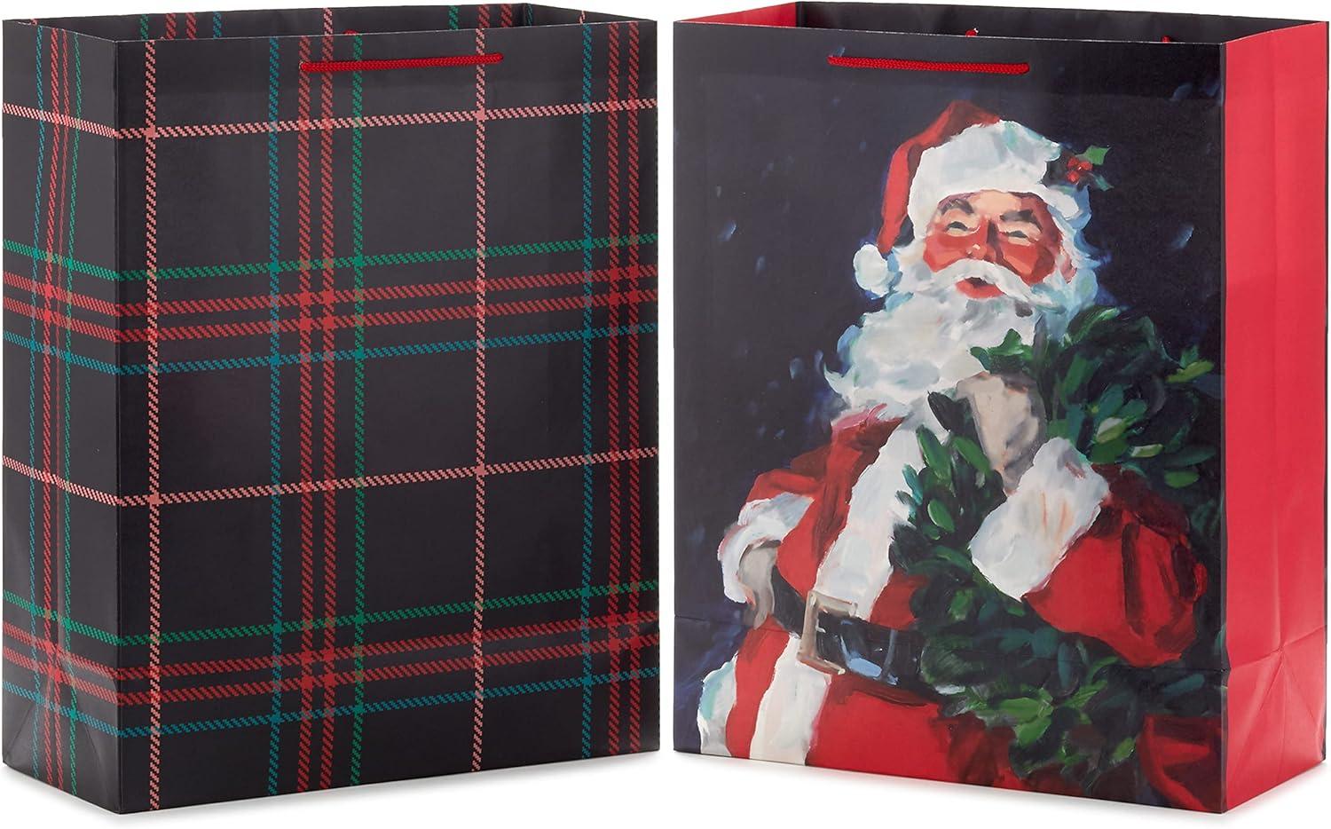 Hallmark 13″ Large Christmas Gift Bag Bundle (3 Bags: Joy Wreath on Gray, Rustic Santa with Tree, Happy Holidays on Red) for Friends, Family, Teachers, Coworkers(1 Count (Pack of 2))