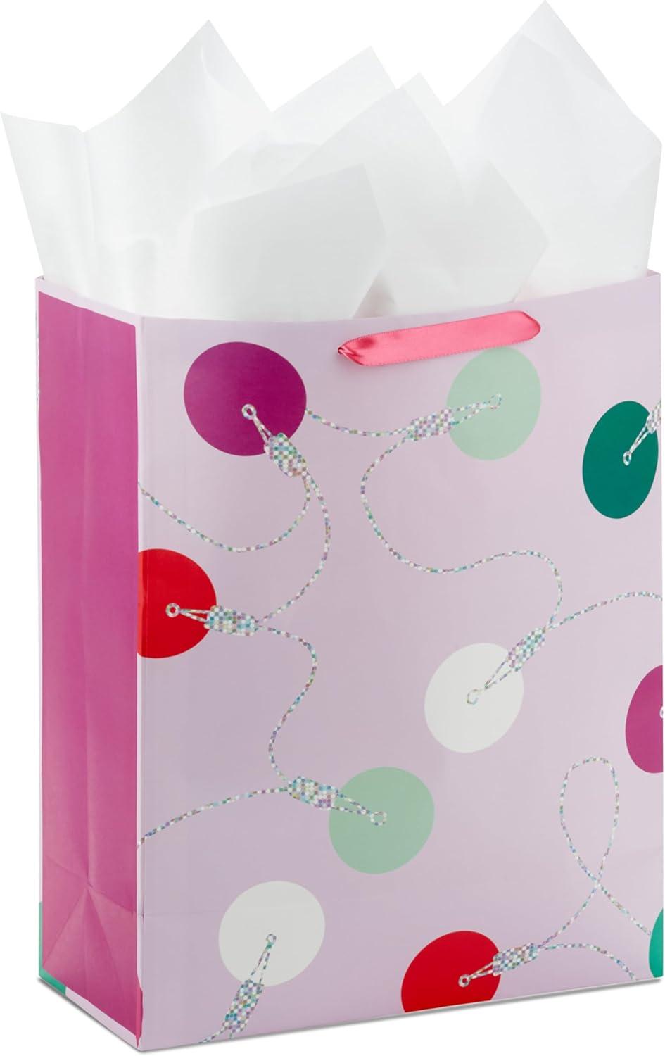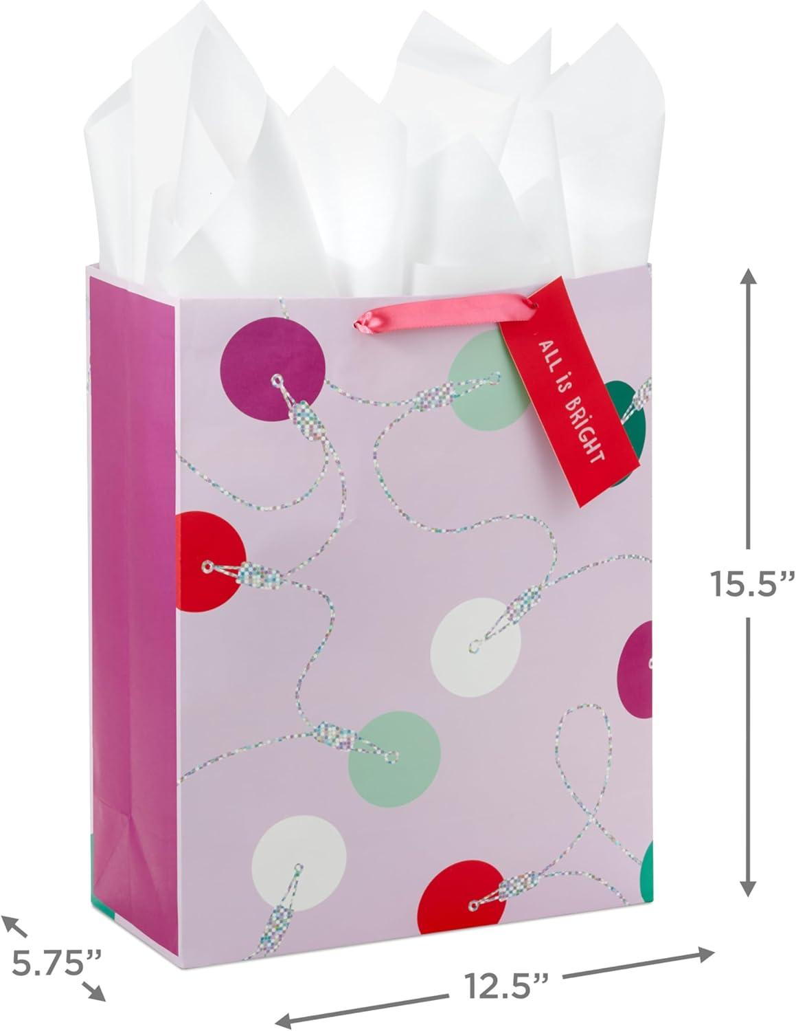 Hallmark 13″ Large Christmas Gift Bag with Tissue Paper and Gift Tag (Traditional Santa Claus) for Kids, Adults, Friends, Family(Christmas Lights)