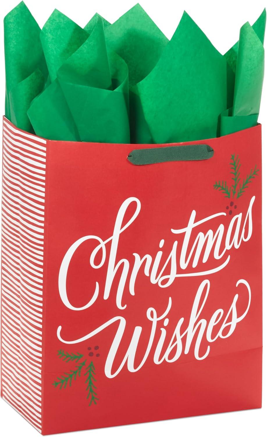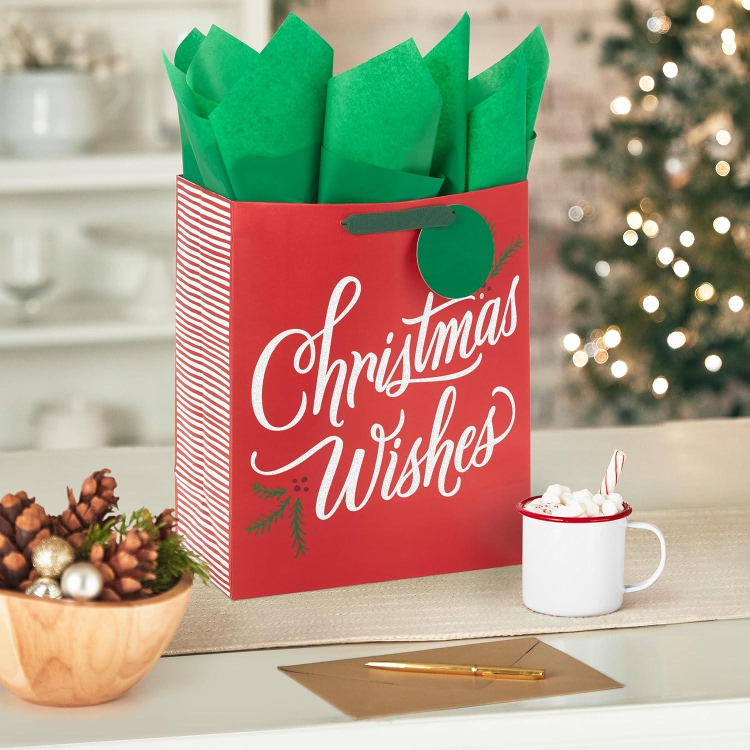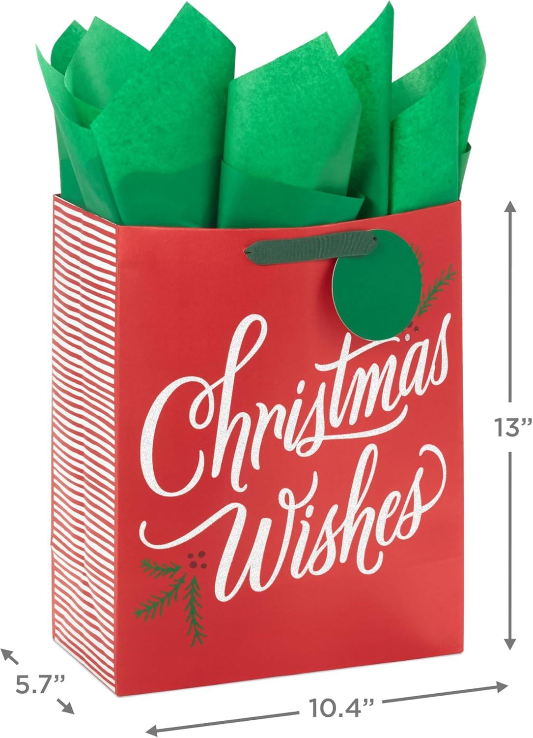 Hallmark 13″ Large Christmas Gift Bag with Tissue Paper and Gift Tag (Traditional Santa Claus) for Kids, Adults, Friends, Family(Christmas Wishes)