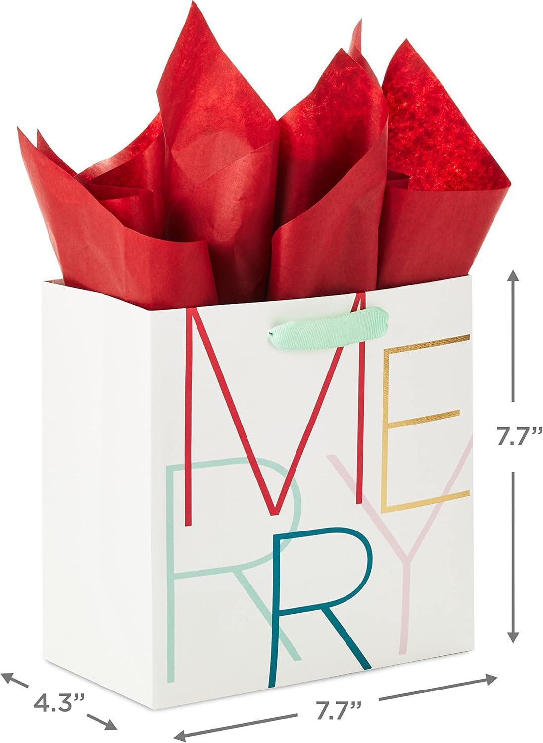 Hallmark 13″ Large Christmas Gift Bag Assortment with Tissue Paper (3 Bags: “Merry Christmas” Wreath, Gold Joy, Snowy Red Barn) Red, White, Gold Foil(1 Count (Pack of 8))