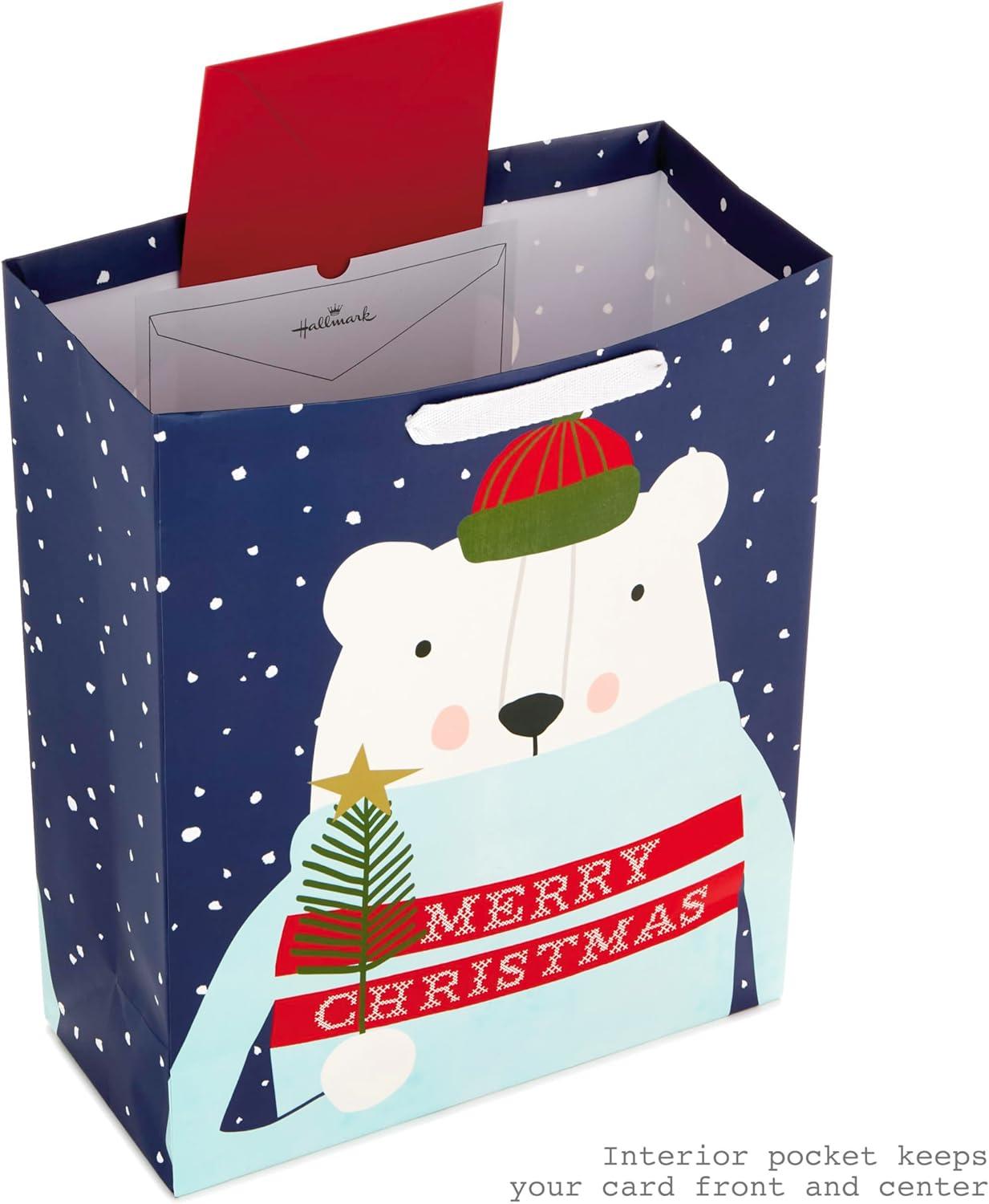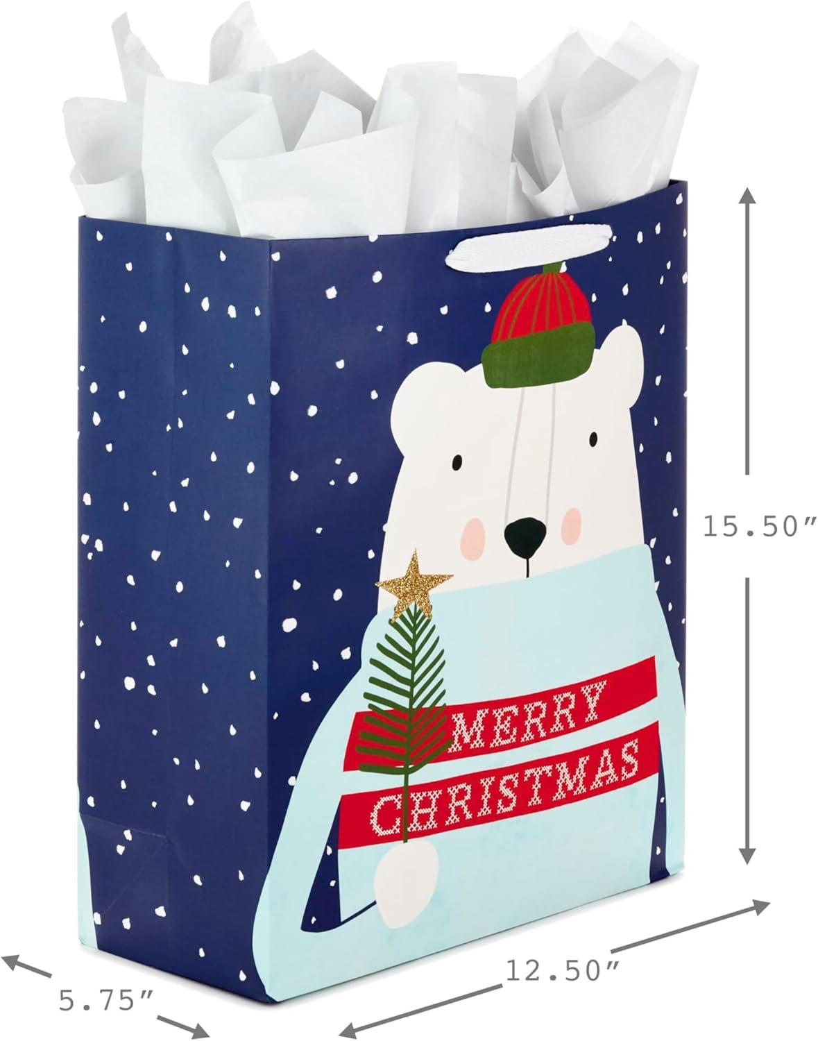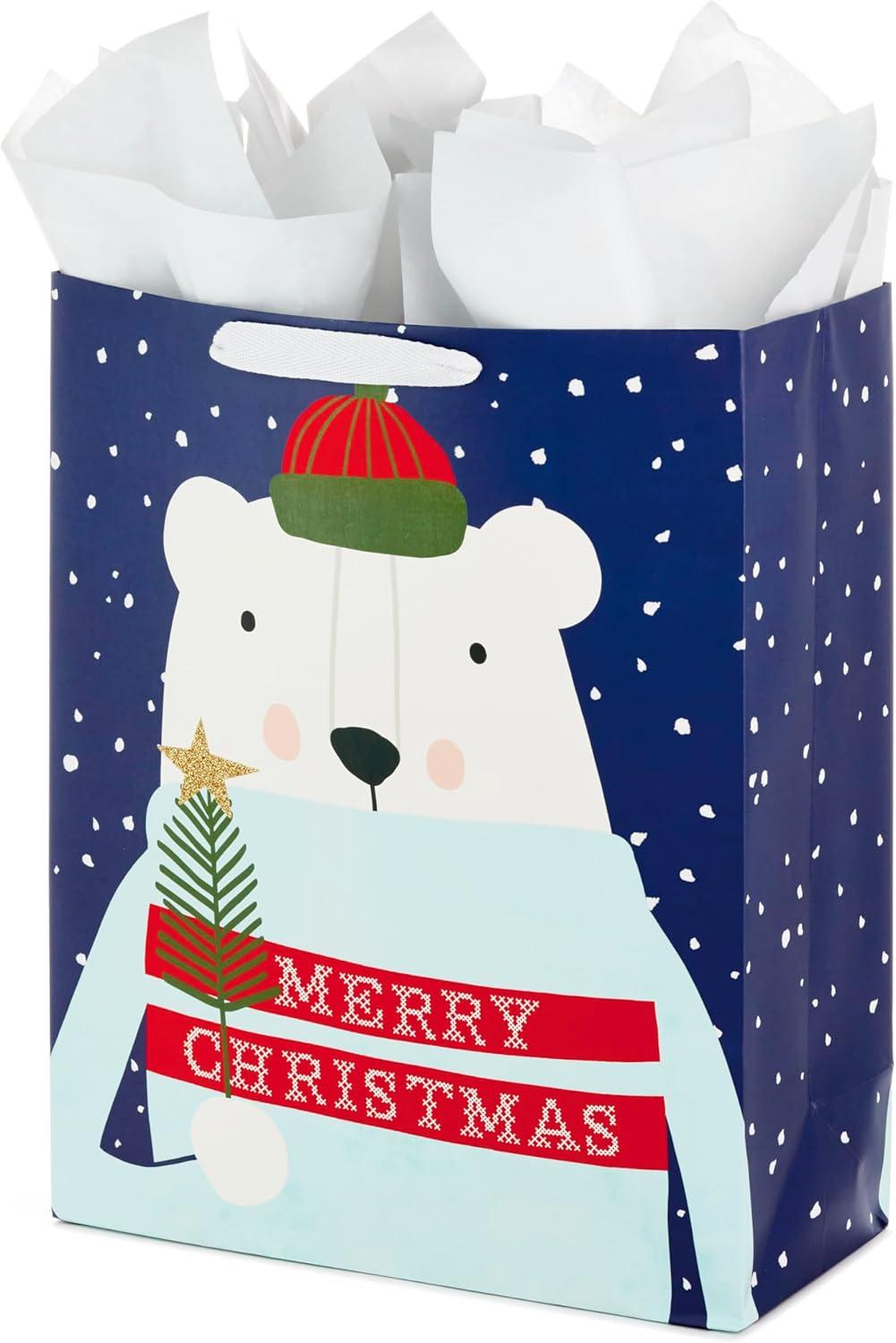 Hallmark 13″ Large Christmas Gift Bag with Tissue Paper and Gift Tag (Traditional Santa Claus) for Kids, Adults, Friends, Family(Polar Bear)
