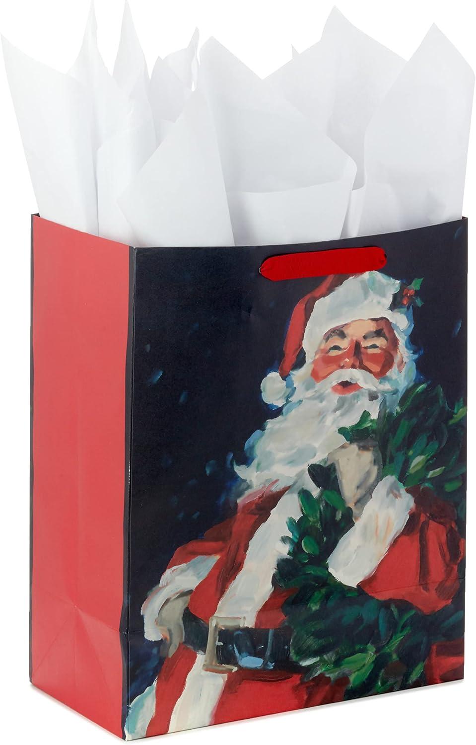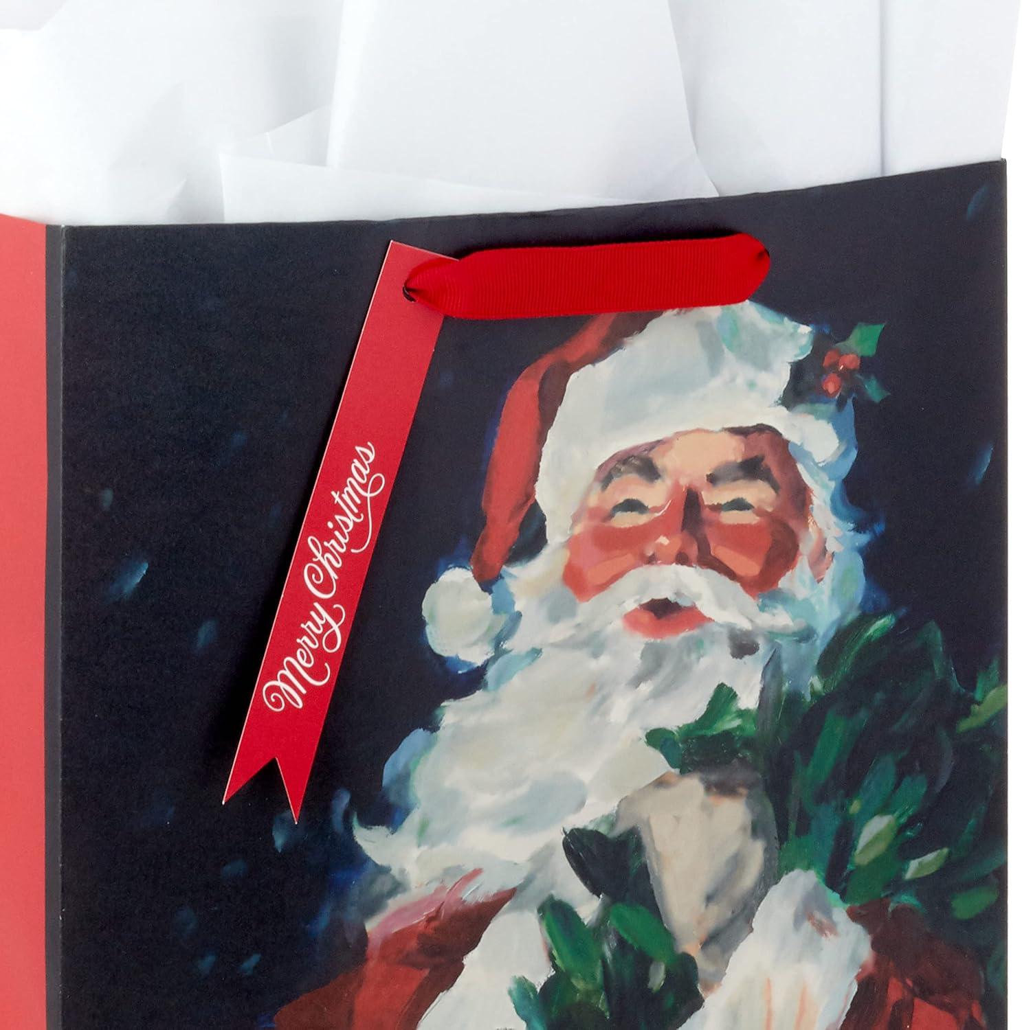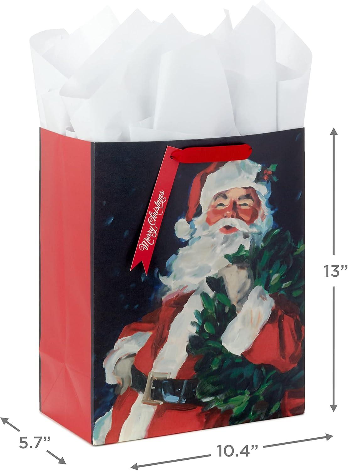 Hallmark 13″ Large Christmas Gift Bag with Tissue Paper and Gift Tag (Traditional Santa Claus) for Kids, Adults, Friends, Family(Modern Merry)