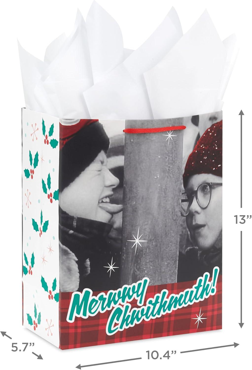 Hallmark 13″ Large Elf Gift Bag with Tissue Paper (Movie Quote: “The Best Way to Spread Christmas Cheer…”) for Kids, Grandchildren, Adults(A Christmas Story)