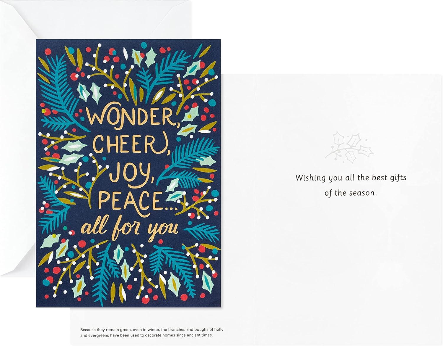Hallmark UNICEF Boxed Christmas Cards, Peaceful Holly Tree (20 Cards and 21 Envelopes) (1XPX2032)(Merry Wishes)