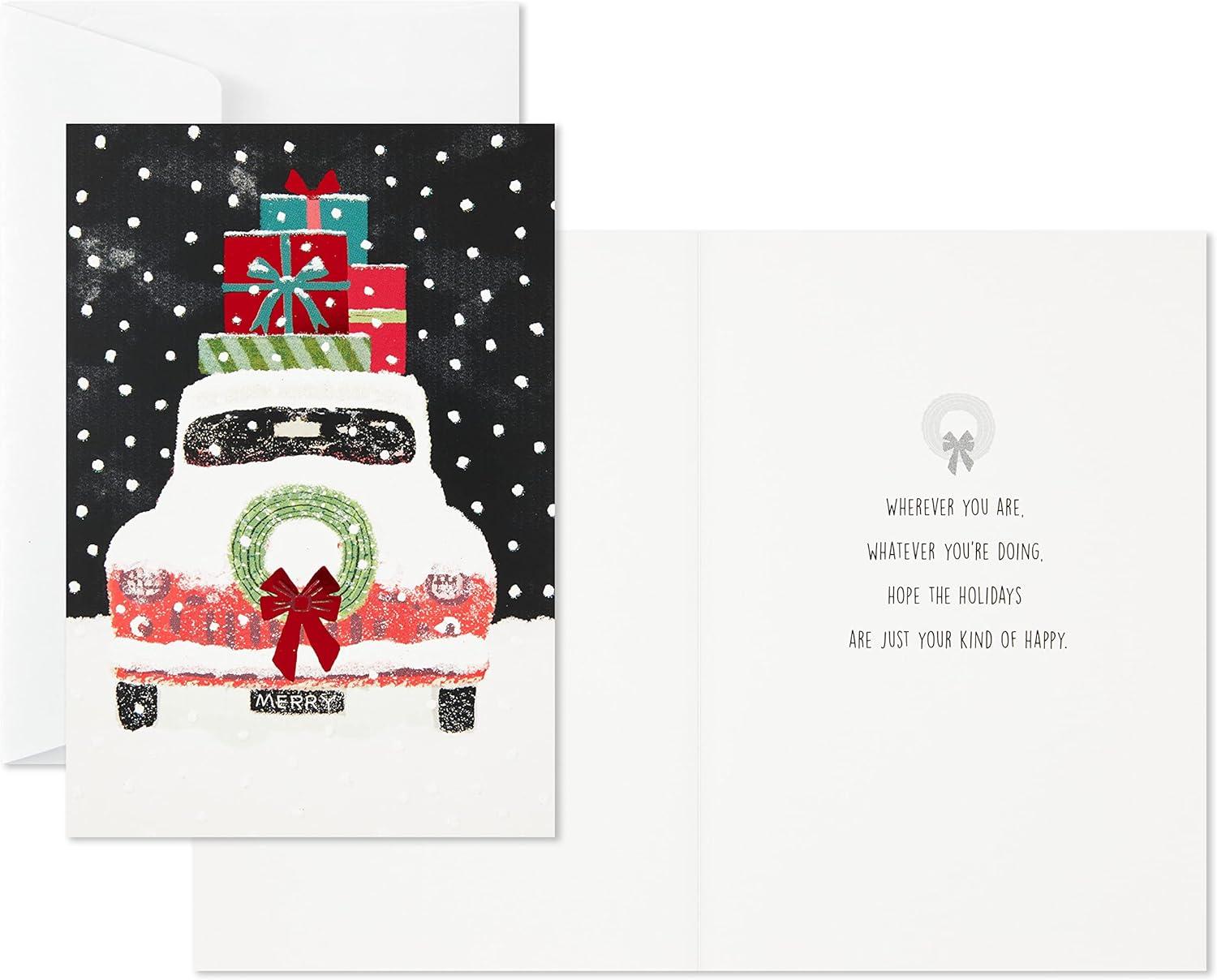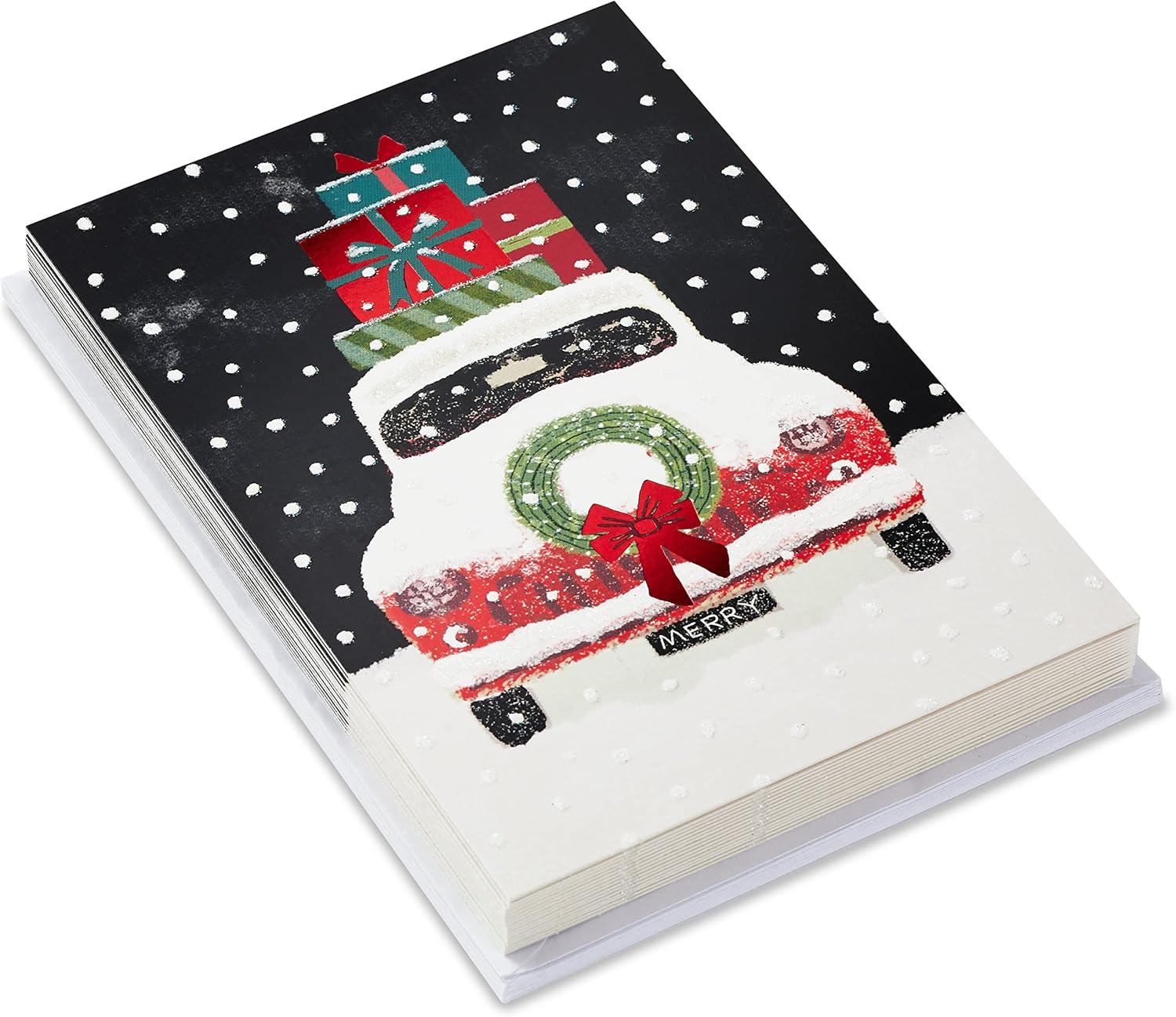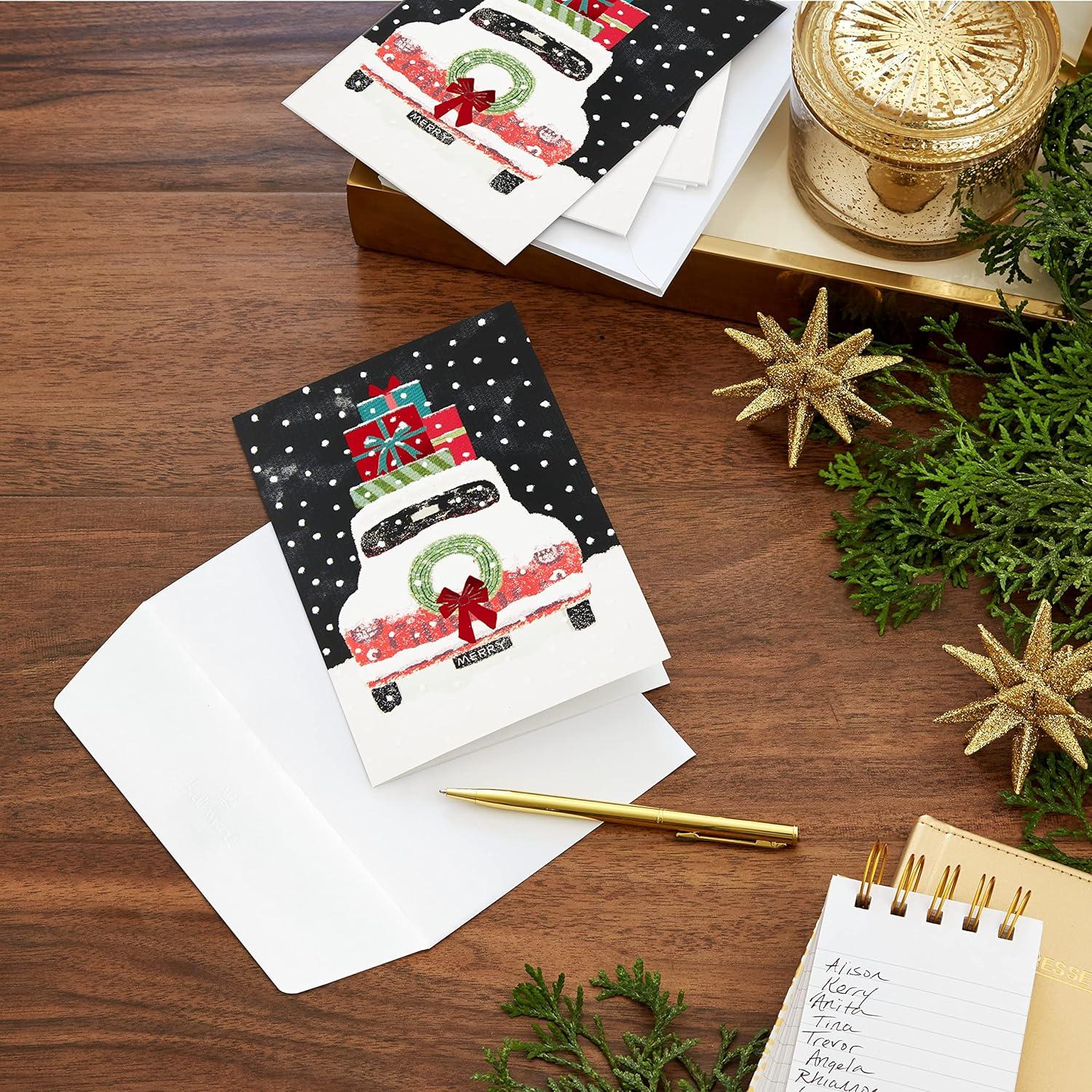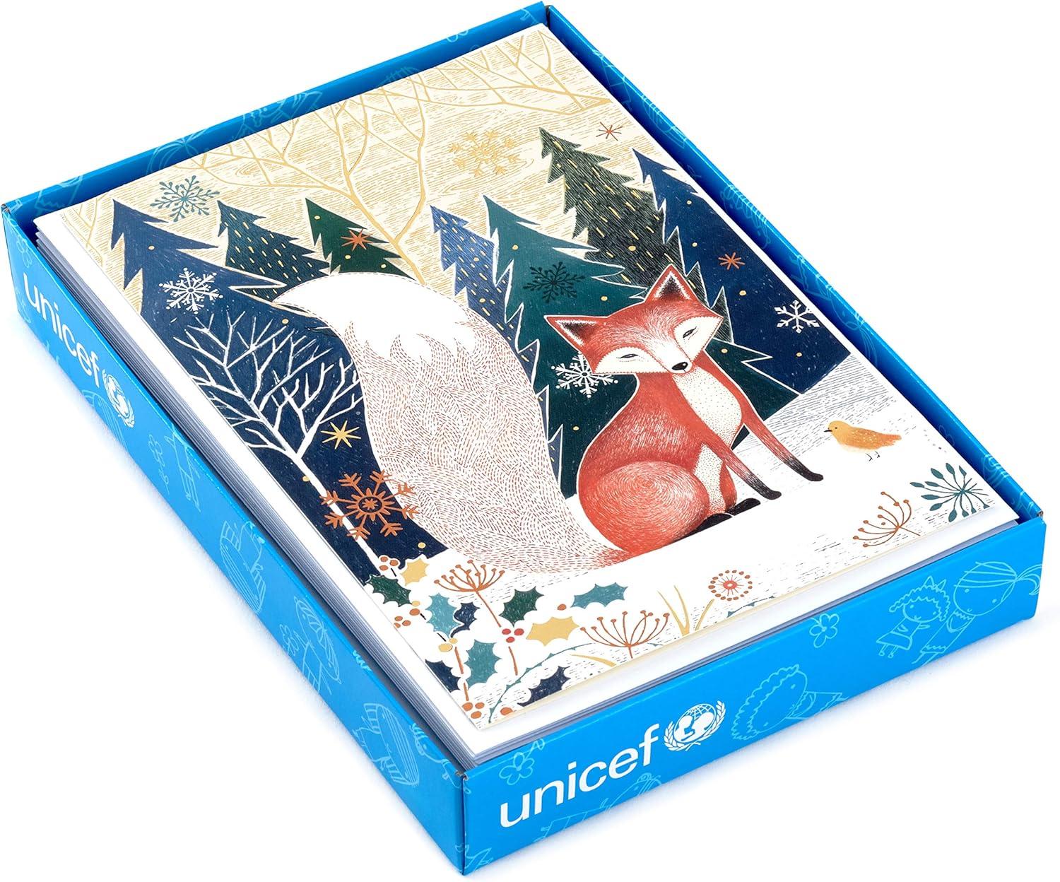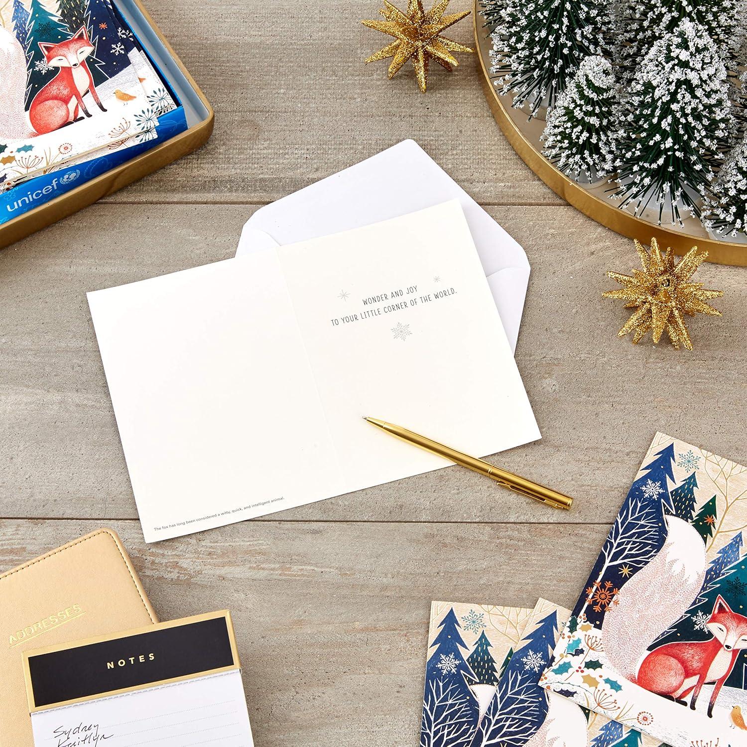 Hallmark UNICEF Boxed Christmas Cards, Folk Art Fox (12 Cards and 13 Envelopes)(Snowy Truck with Gifts Holiday Cards)