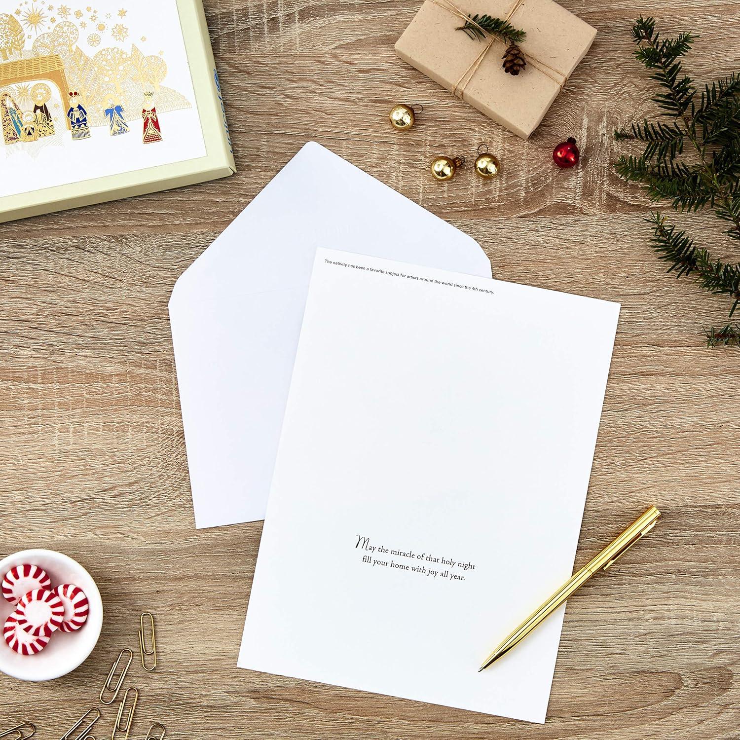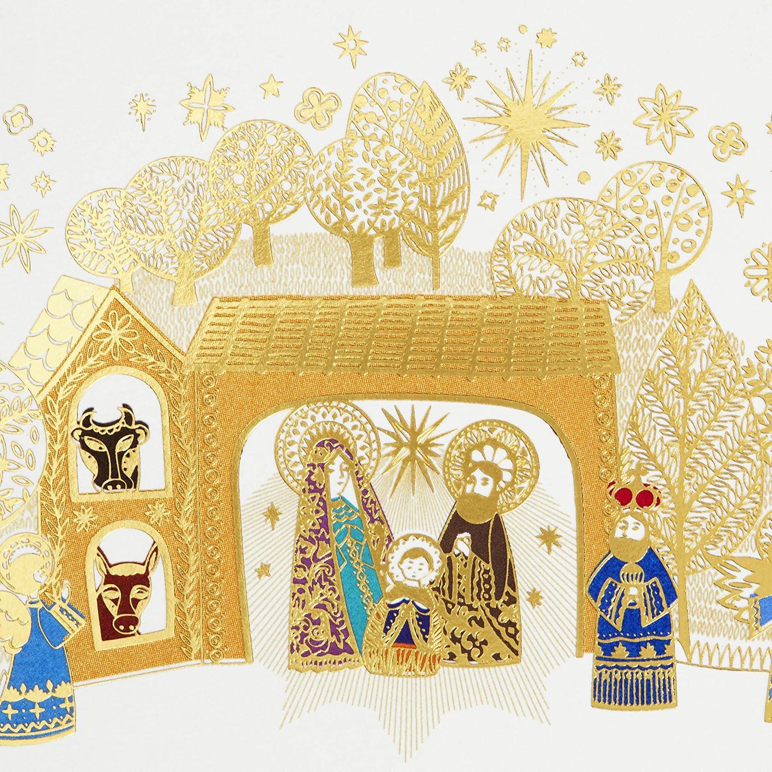 Hallmark UNICEF Boxed Christmas Cards, Peace Tree (12 Cards and 13 Envelopes) (1XPX5649)(Gold Foil Nativity)