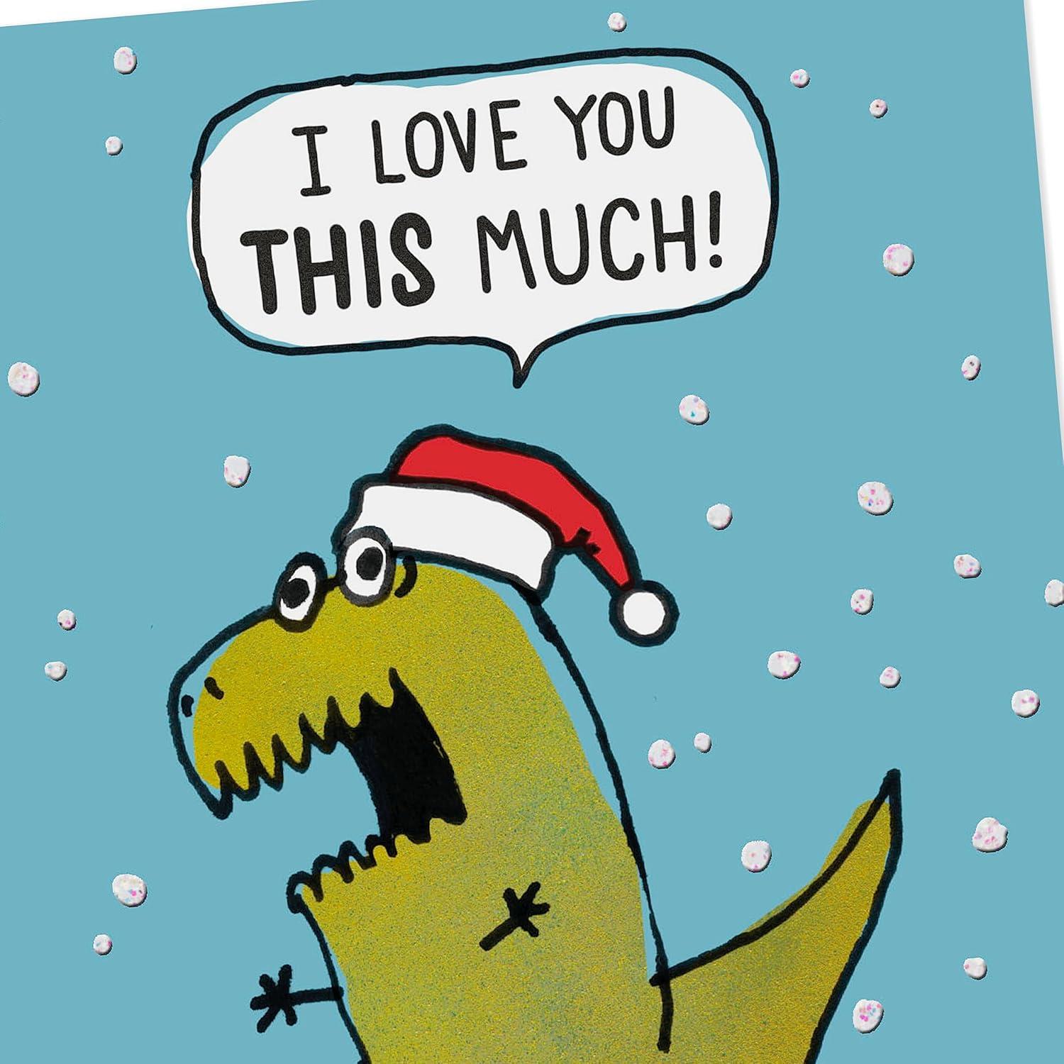 Hallmark Shoebox Funny Christmas Card (T-Rex I Love You THIS Much) Dinosaur with Santa Hat(Funny Peace and Goodwill Card)