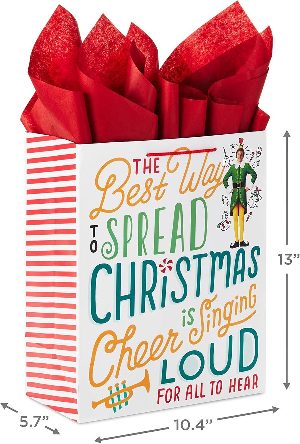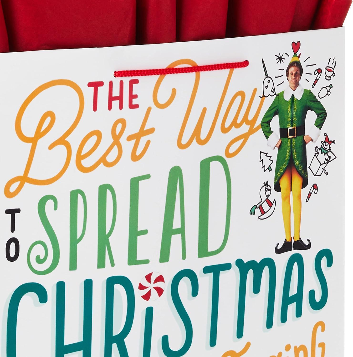 Hallmark 13″ Large Elf Gift Bag with Tissue Paper (Movie Quote: “The Best Way to Spread Christmas Cheer…”) for Kids, Grandchildren, Adults(Elf)