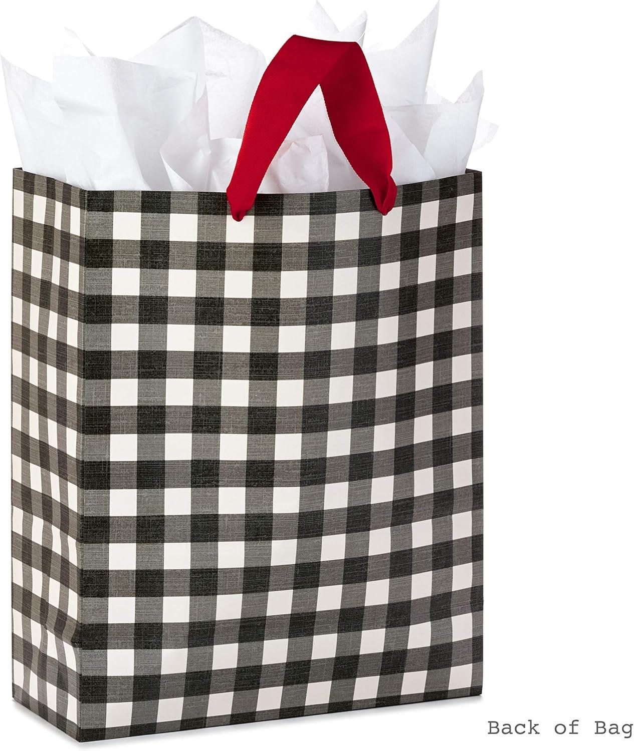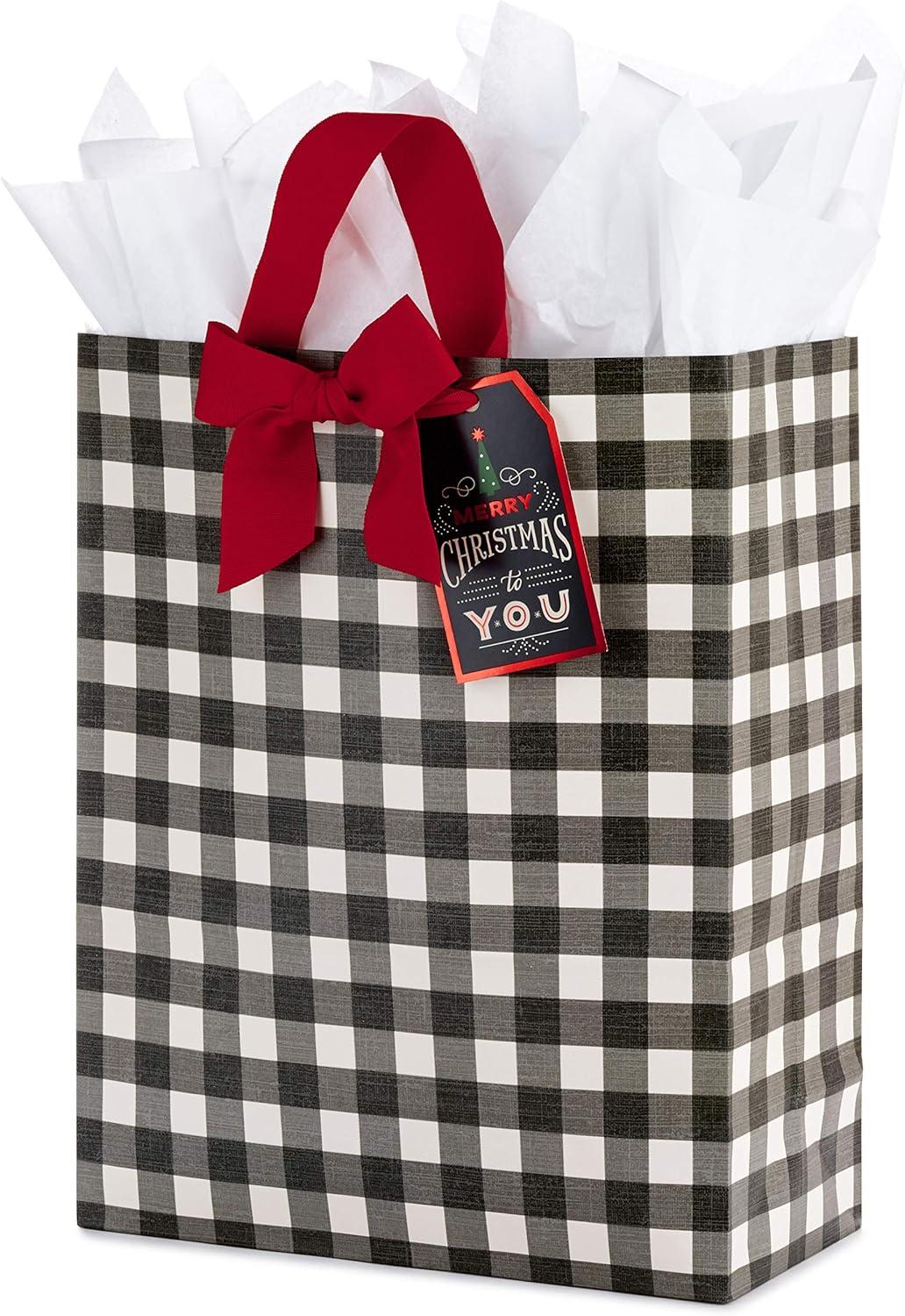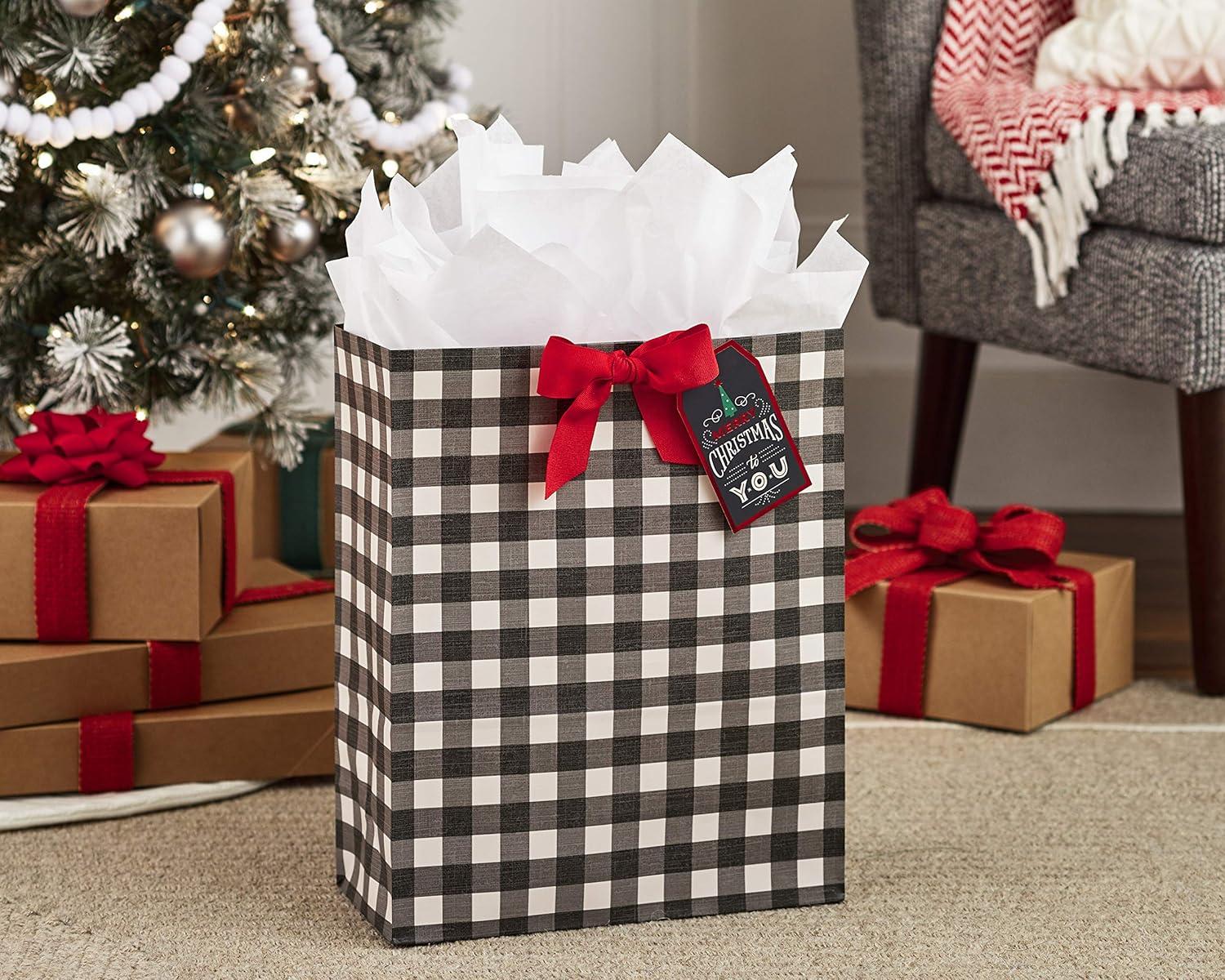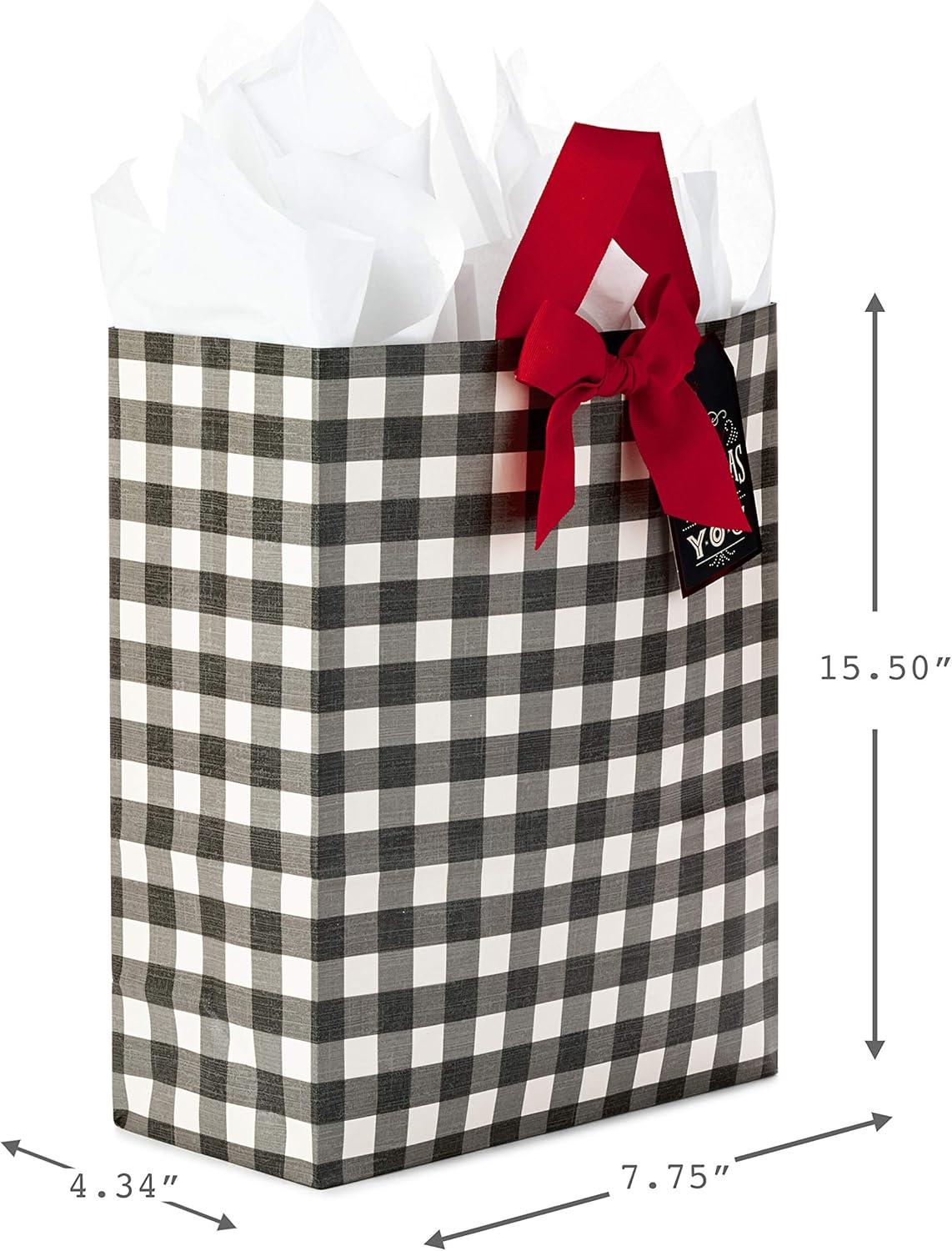 Hallmark 15″ Extra Large Christmas Gift Bag with Tissue Paper (Black Buffalo Plaid with Red Bow)(Black Buffalo Plaid)