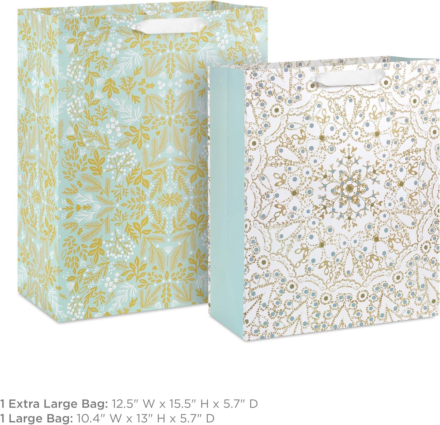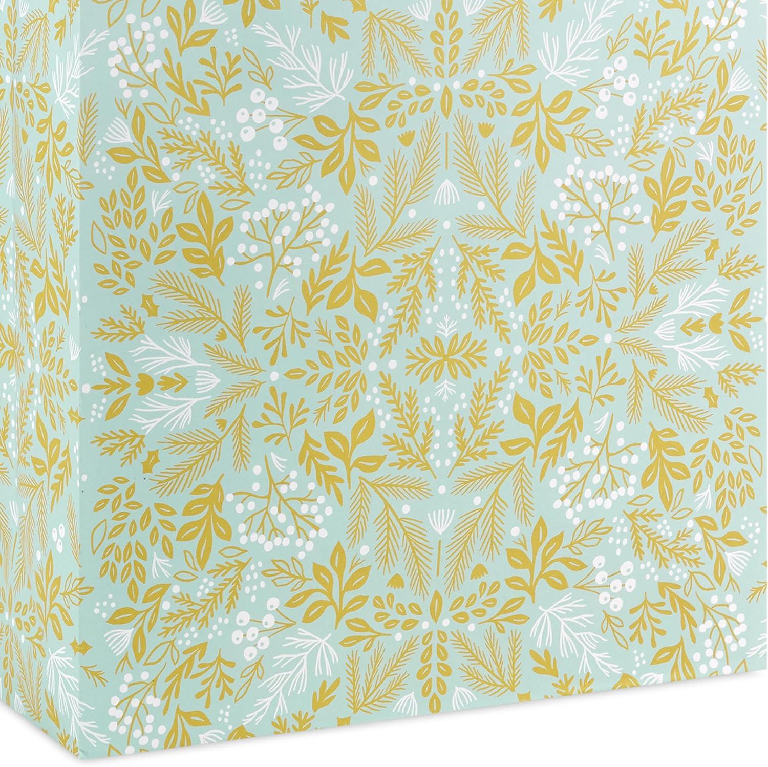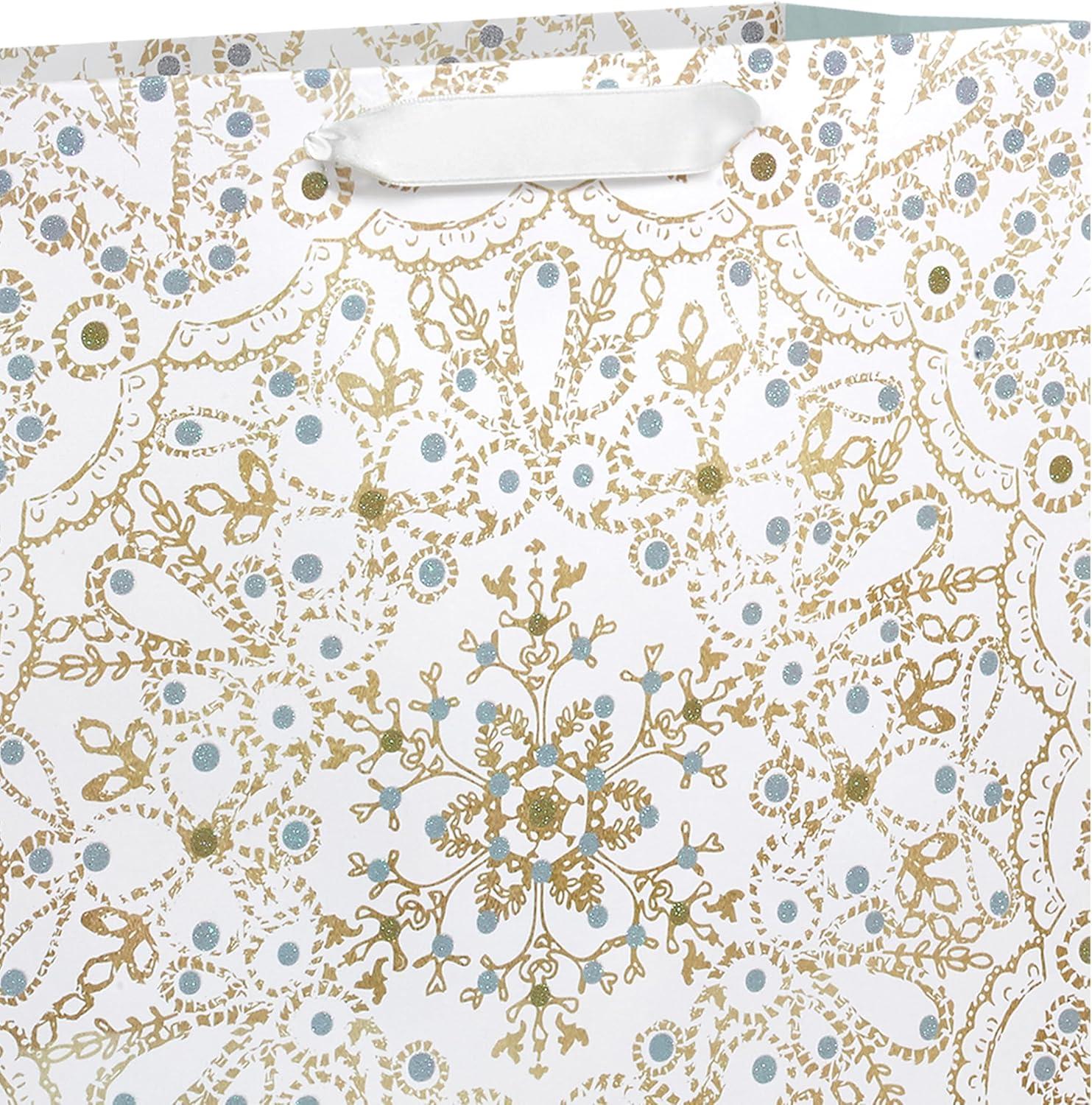Hallmark 15″ Extra Large Holiday Gift Bag with Tissue Paper (Teal Blue and Gold, Snowflakes) for Hanukkah, Winter Solstice, Christmas(Glittery Gold Foil)