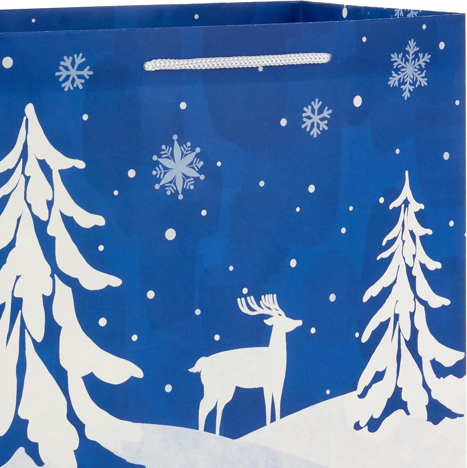 Hallmark 13″ Large Gift Bags with Tissue Paper (3 Elegant Bags: Navy Blue and White, Glittery Wreath, Trees) for Winter Weddings, Birthdays, Baby Showers(Navy Gold)