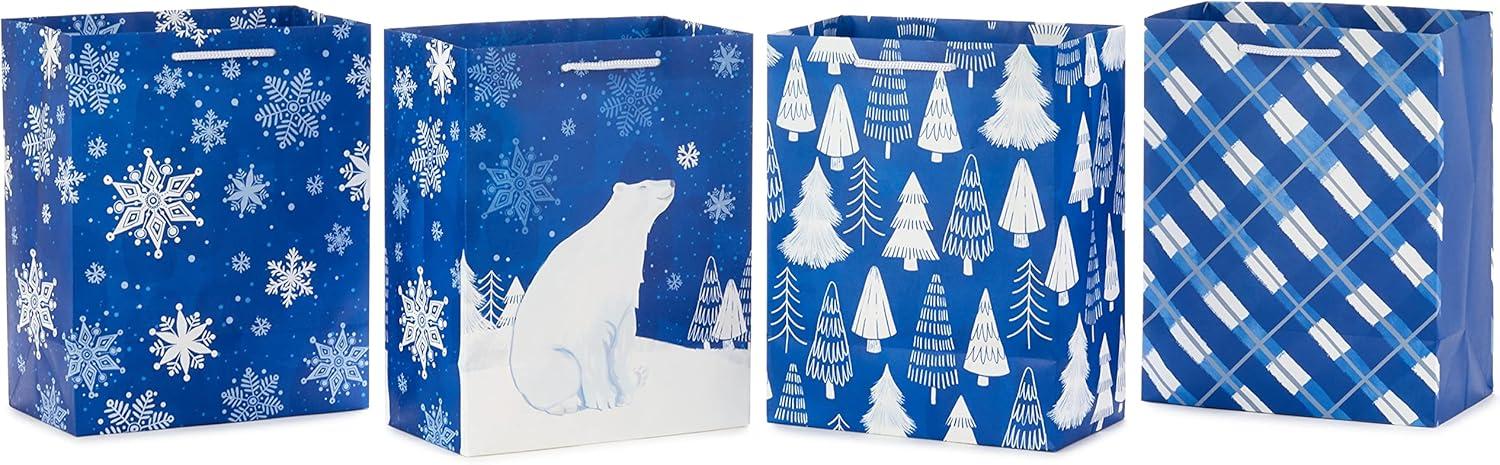 Hallmark 6″ Christmas Gift Bags (6 Small Bags: Blue and White, Polar Bear, Snowflakes, Reindeer and Trees) for Holiday Parties, Gift Cards, Teacher Presents, Party Favors(4 Count (Pack of 1))