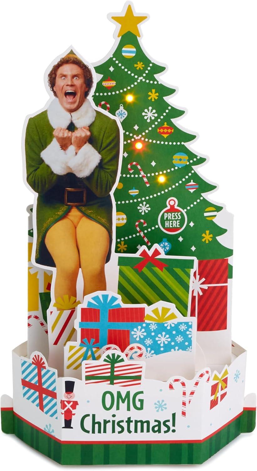 Hallmark Paper Wonder Elf Displayable Pop Up Christmas Card with Sound (Buddy the Elf)(Elf Cards)