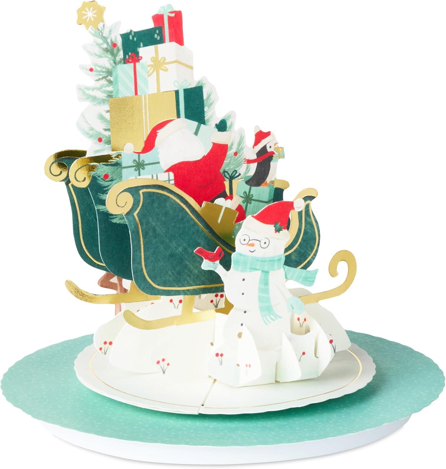 Hallmark Paper Wonder Pop Up Holiday Card (Magnolia Displayable Bouquet)(Santa’s Sleigh)