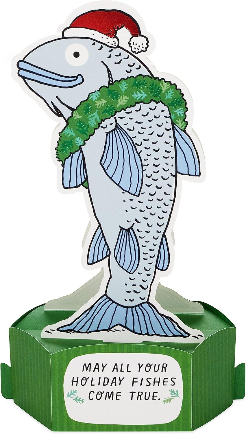 Hallmark Paper Wonder Shoebox Funny Pop Up Christmas Card (Christmas Cod Fish)(Christmas Cod Funny Pop Up Card)