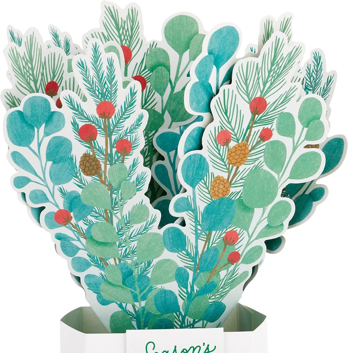 Hallmark Paper Wonder Pop Up Holiday Card (Woodland Animals Pop Up)(Pop Up Bouquet Holly and Pine)