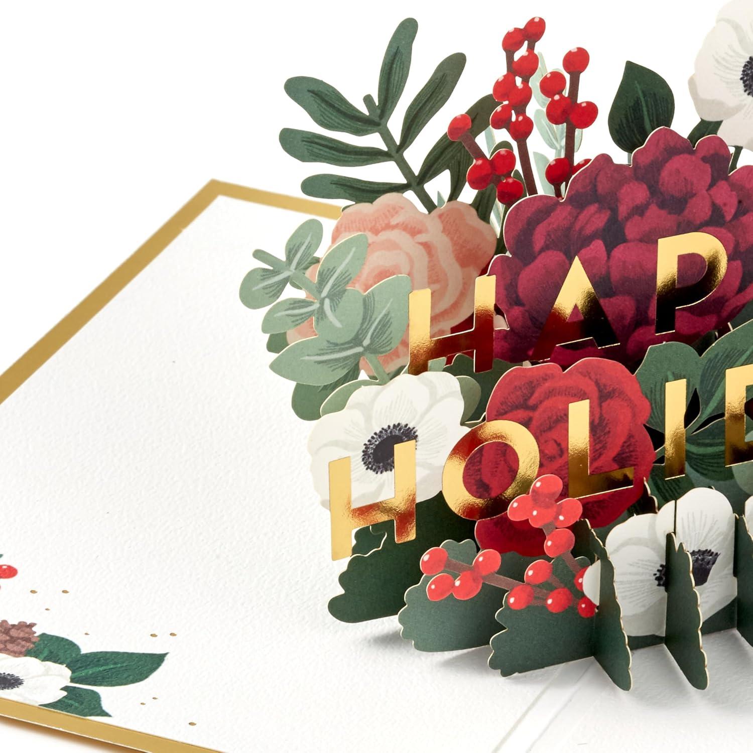 Hallmark Signature Paper Wonder Pop-Up Christmas Card (Happy Holidays) Winter Flowers