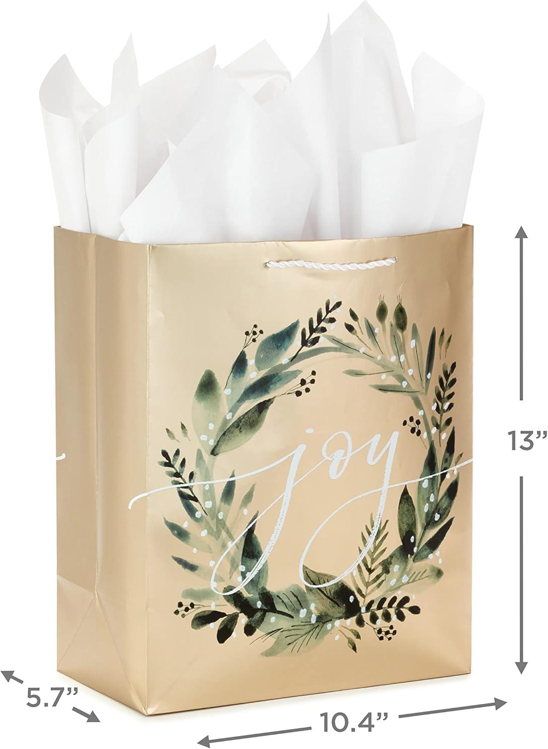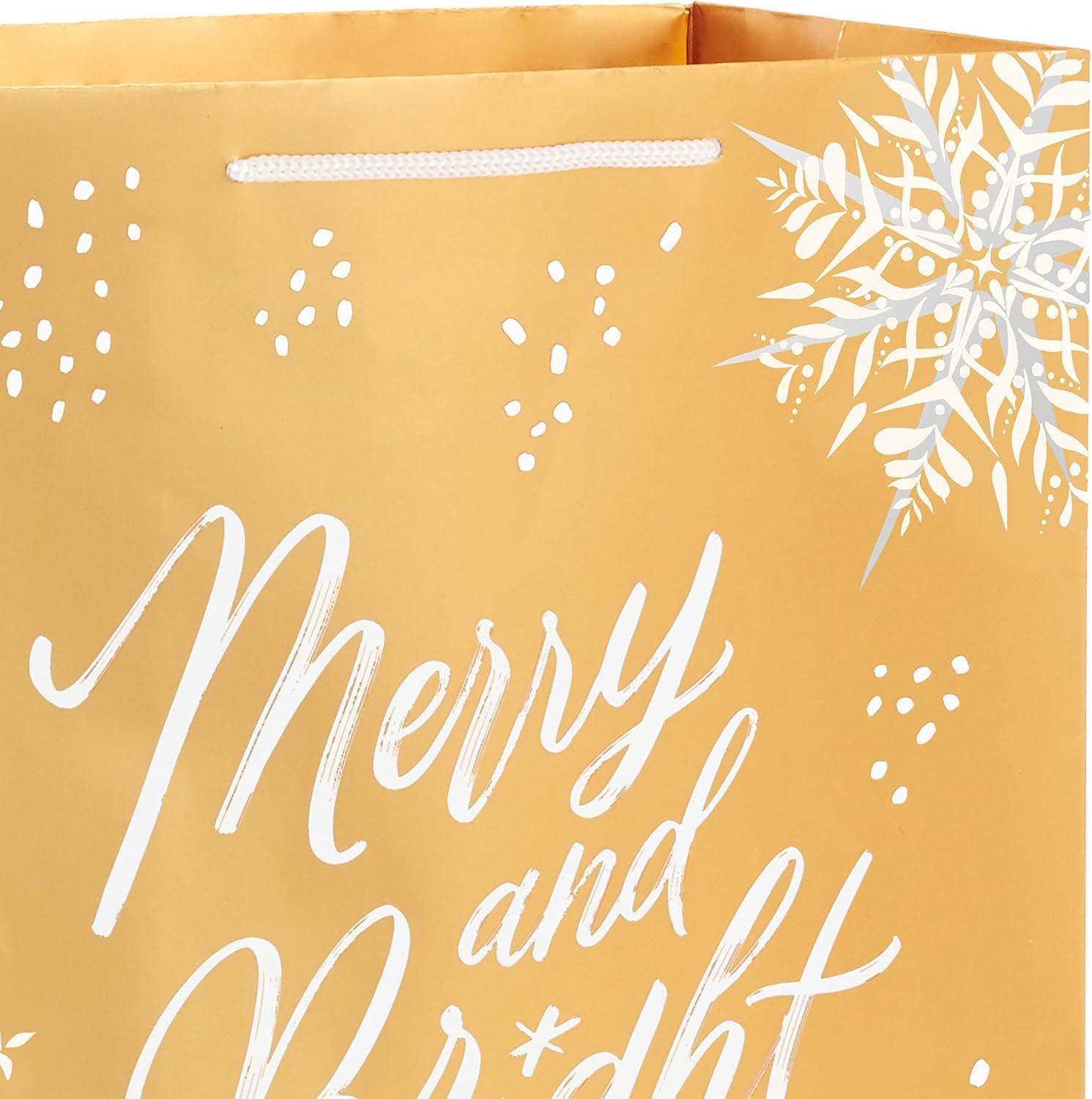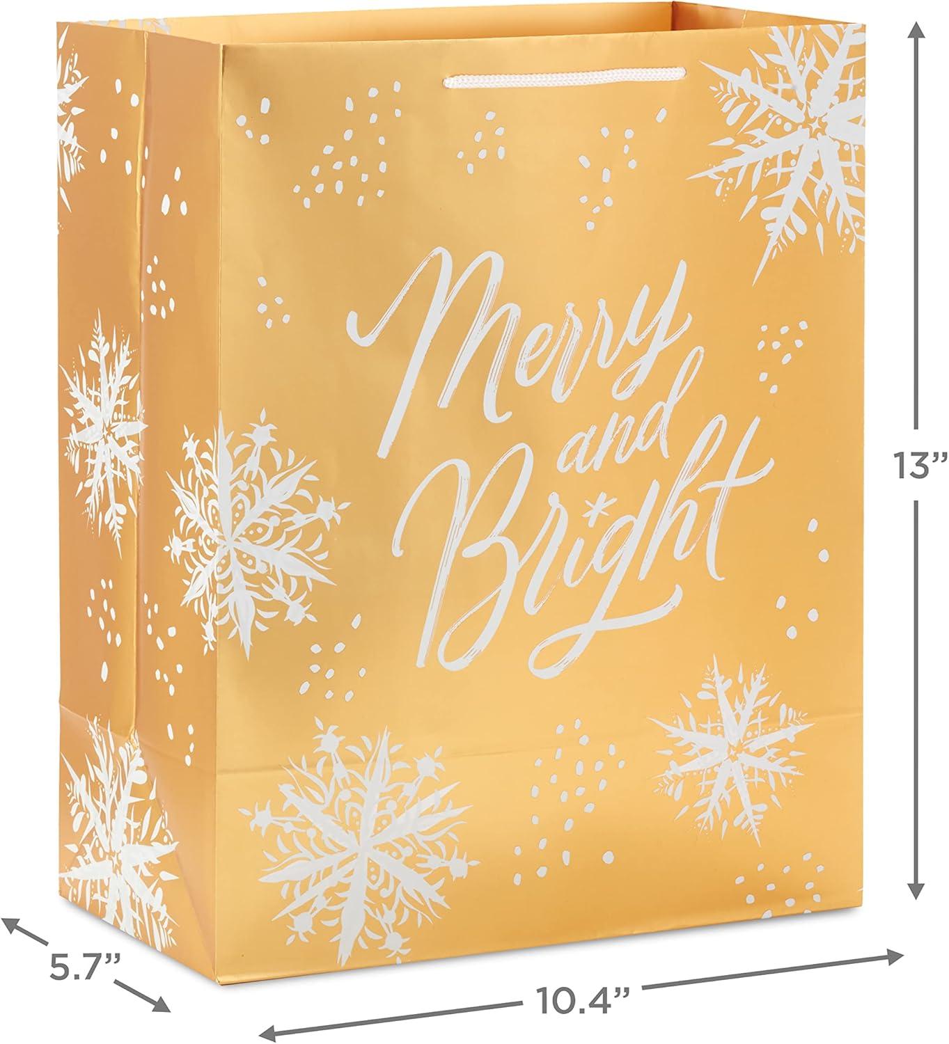 Hallmark 13″ Large Gift Bags with Tissue Paper (3 Elegant Bags: Navy Blue and White, Glittery Wreath, Trees) for Winter Weddings, Birthdays, Baby Showers(Metallic Gold Silver Rose Gold)