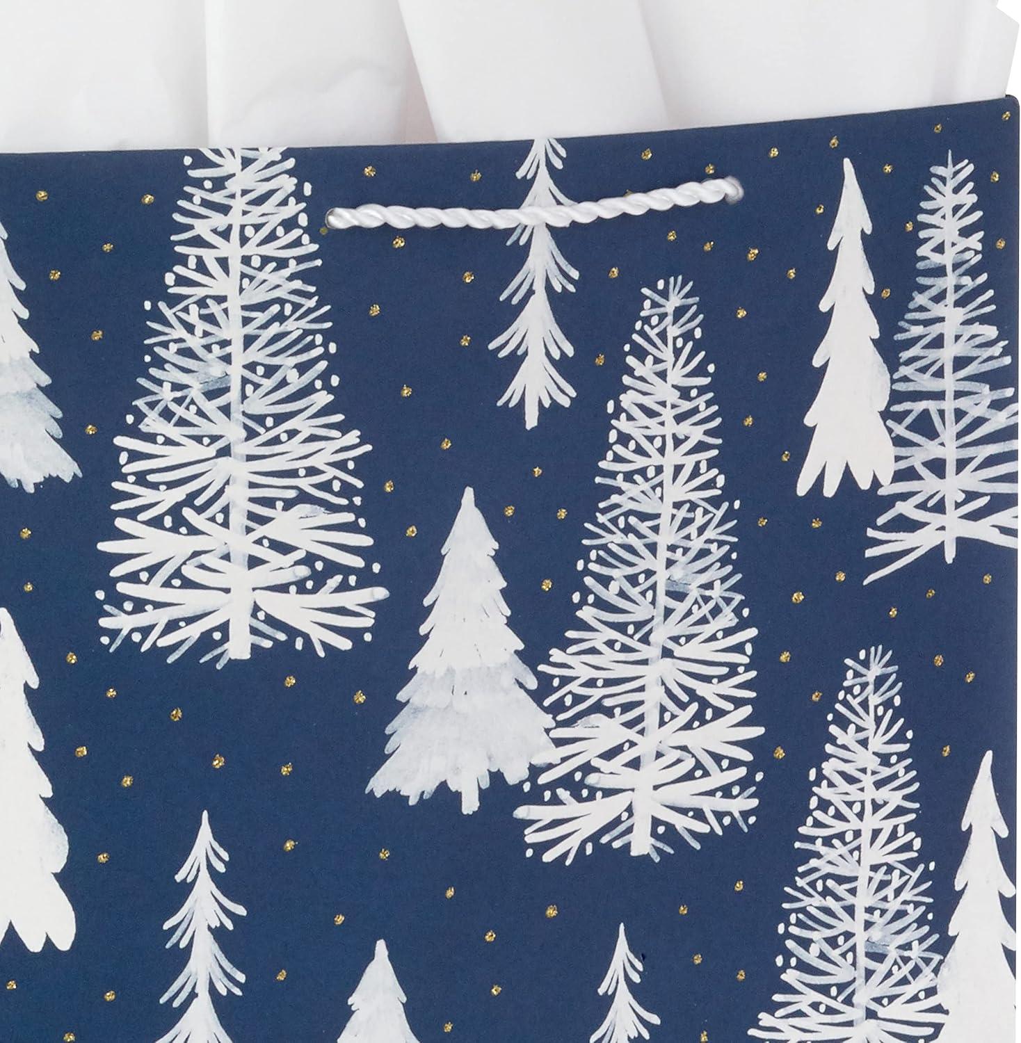 Hallmark 13″ Large Gift Bags with Tissue Paper (3 Elegant Bags: Navy Blue and White, Glittery Wreath, Trees) for Winter Weddings, Birthdays, Baby Showers(Navy Gold)