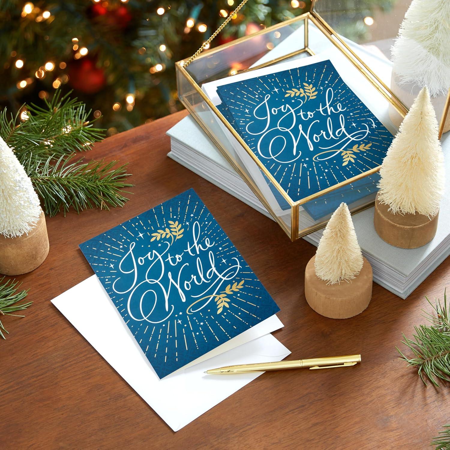 Hallmark Boxed Christmas Cards, Joy to the World (40 Cards and 40 Envelopes) Blue and Gold(Joy to the World)