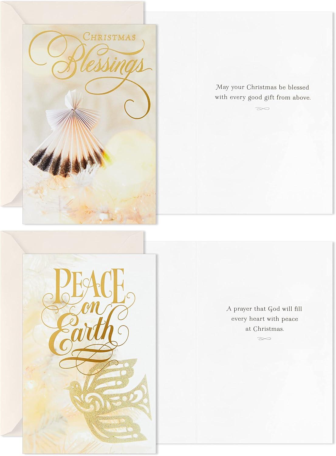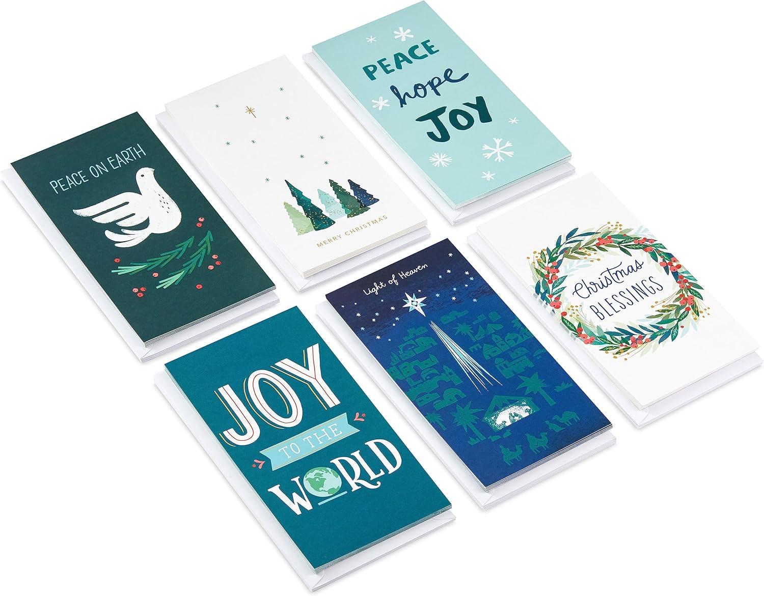 Hallmark Boxed Religious Christmas Cards Assortment, Christmas Blessings (6 Designs, 24 Cards with Envelopes)(Blue Green Peace Holiday Money Holder Assortment)