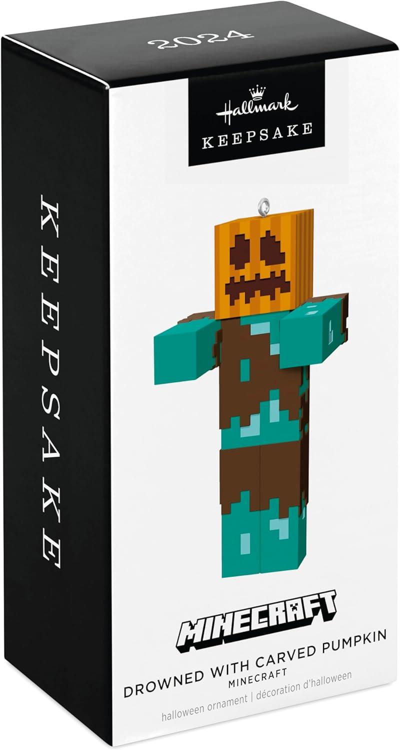 Hallmark Keepsake Halloween Ornament 2024, Minecraft Drowned with Carved Pumpkin, Gifts for Gamers(Minecraft)