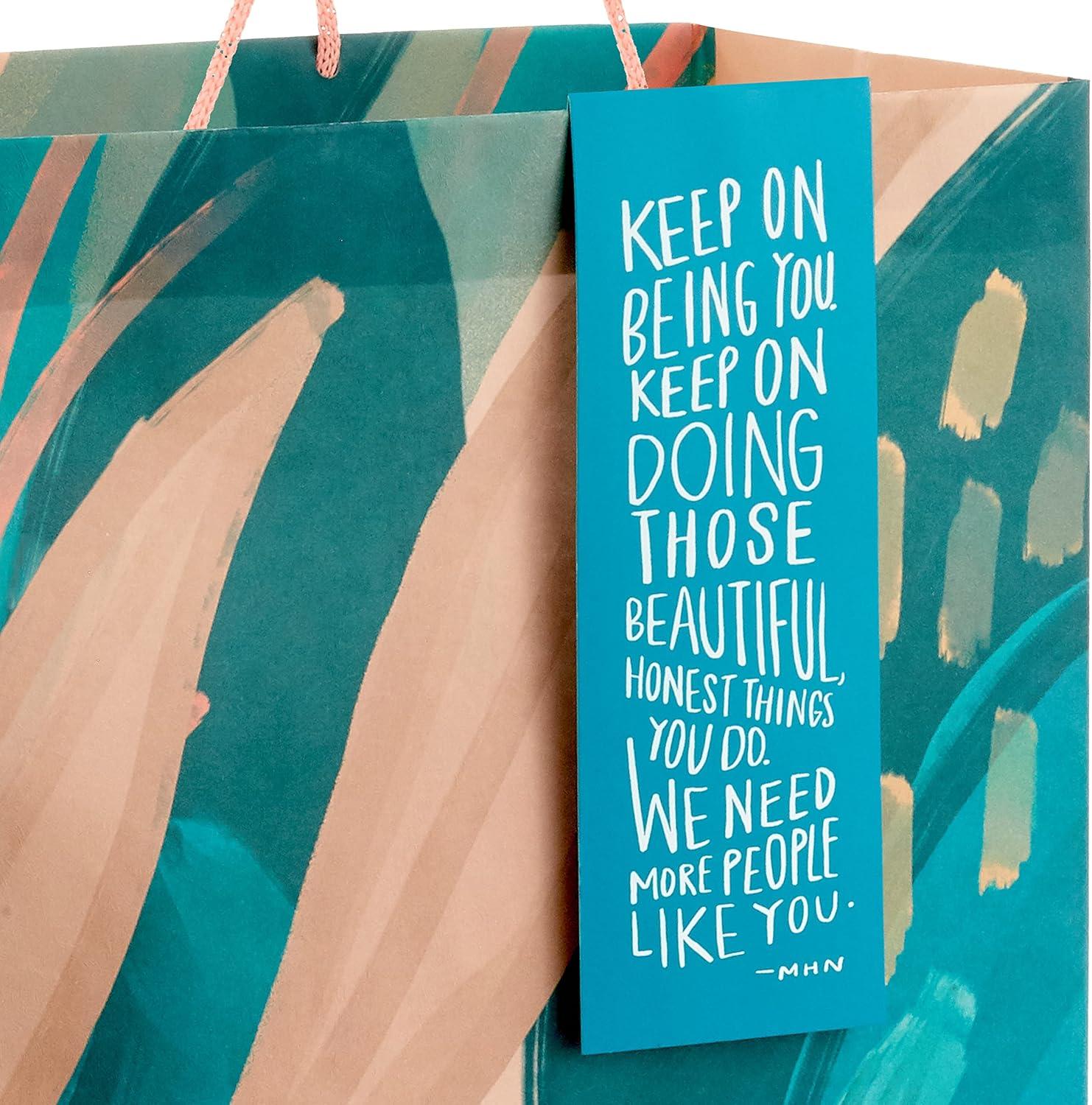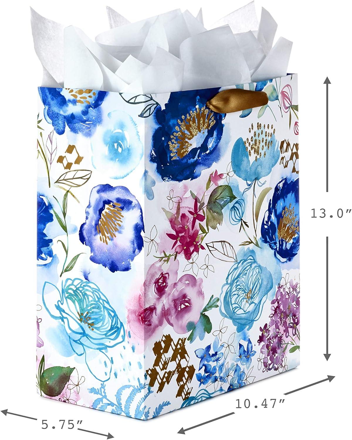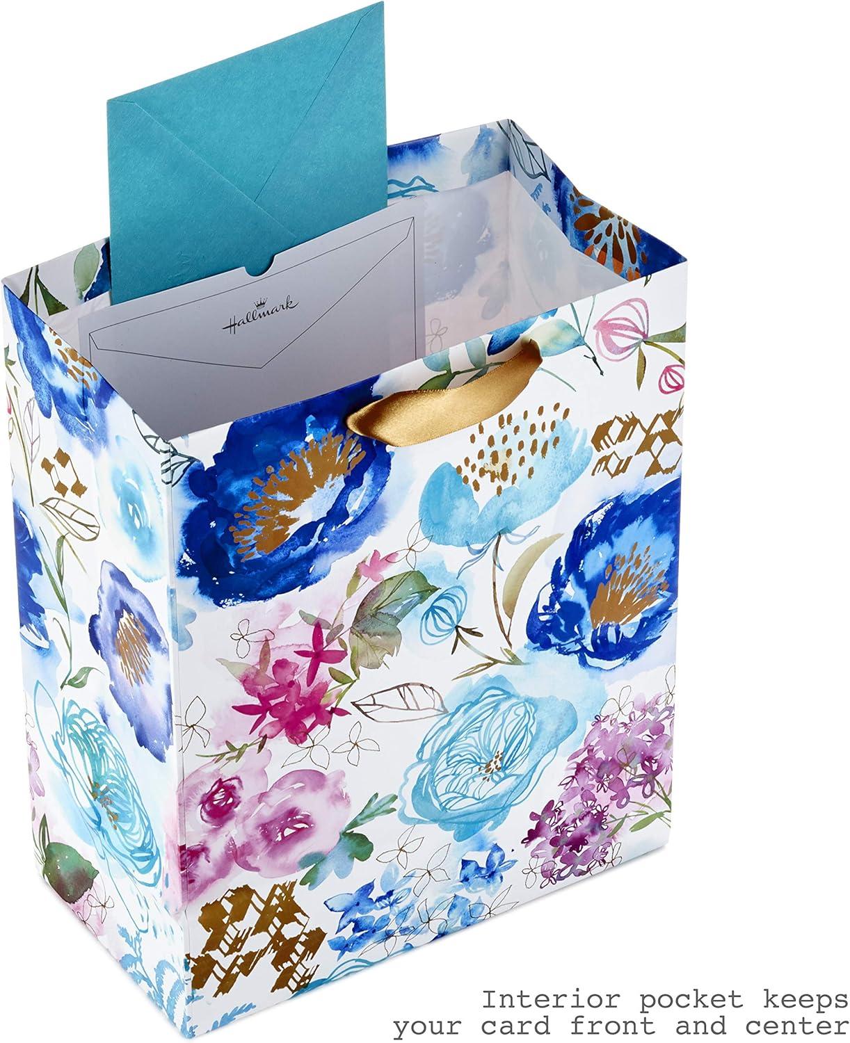 Hallmark Morgan Harper Nichols Gift Bag Bundle (2 Bags: 1 Medium 9″, 1 Large 13″) Pink, Peach, Green, Teal Floral for Birthdays, Mother’s Day, Graduations(Teal Coral)