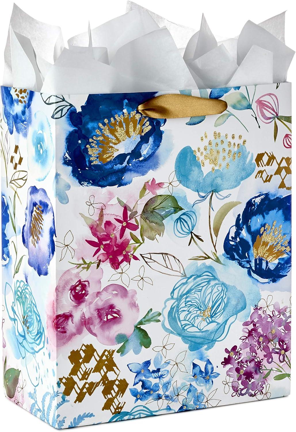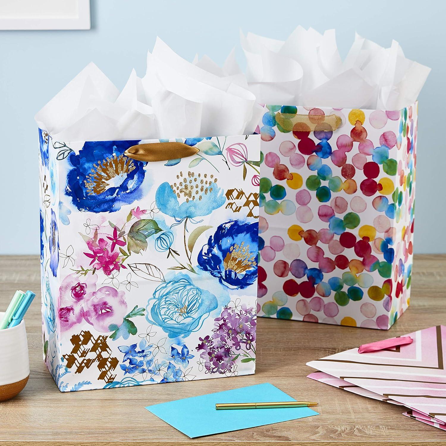 Hallmark Morgan Harper Nichols Gift Bag Bundle (2 Bags: 1 Medium 9″, 1 Large 13″) Pink, Peach, Green, Teal Floral for Birthdays, Mother’s Day, Graduations(White Pink)