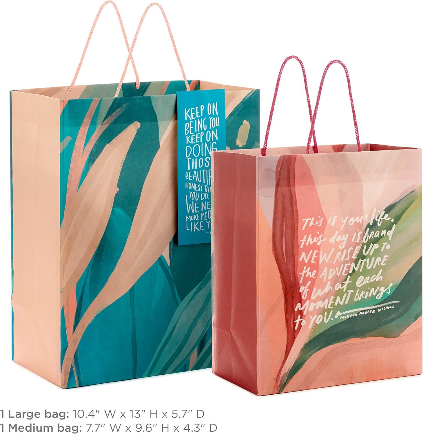 Hallmark Morgan Harper Nichols Gift Bag Bundle (2 Bags: 1 Medium 9″, 1 Large 13″) Pink, Peach, Green, Teal Floral for Birthdays, Mother’s Day, Graduations(Pink)