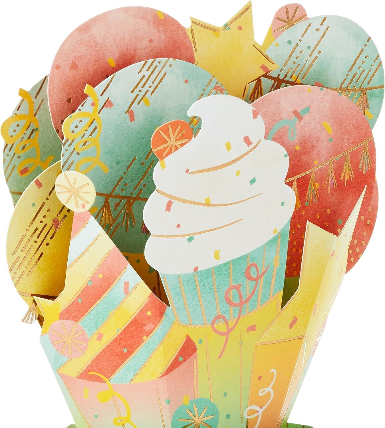Hallmark Paper Wonder Birthday Pop Up Card (Cupcake Balloons Bouquet)(Cupcake Balloons Bouquet)