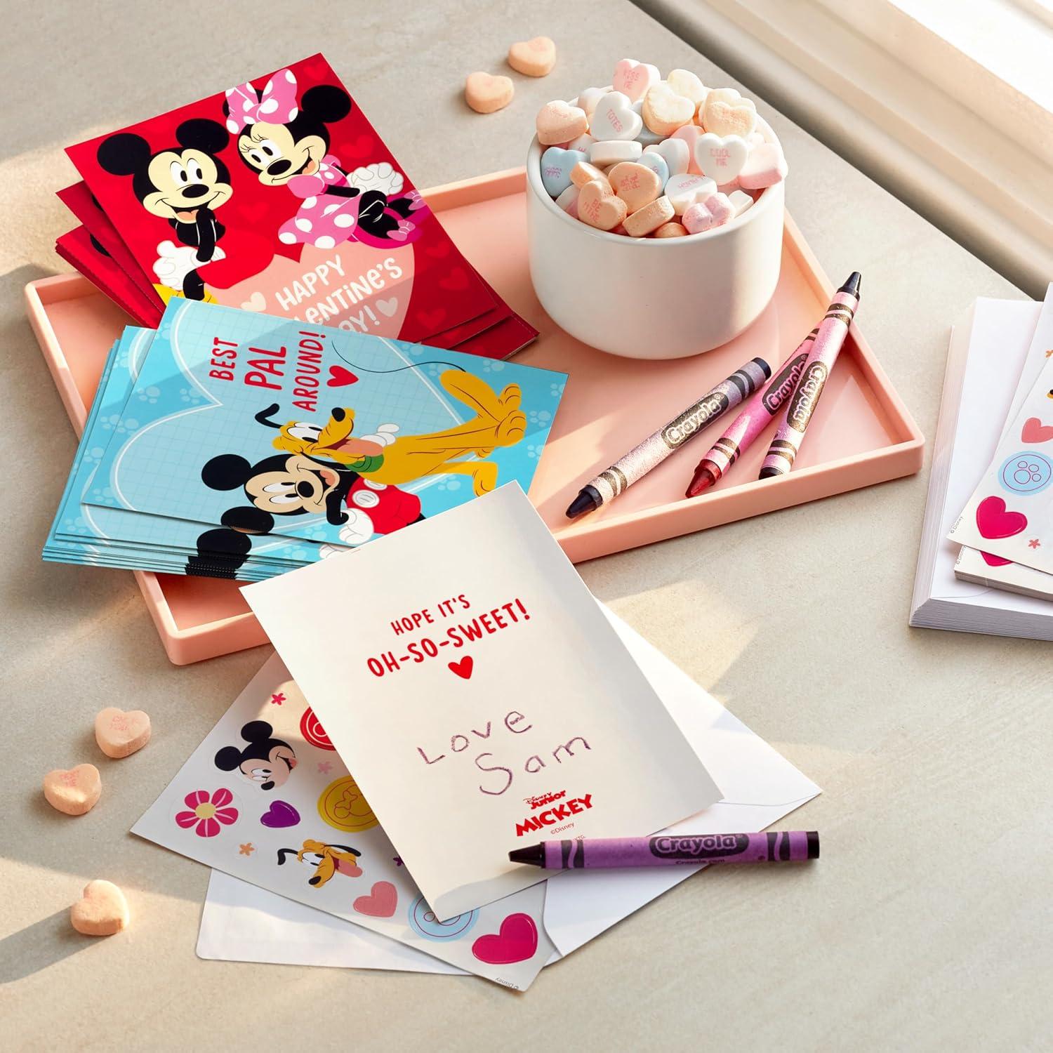 Hallmark Disney Mickey Mouse Valentine’s Day Sticker Card Assortment for Kids (24 Note Cards, Sticker Sheets and Envelopes)(Mickey Mouse Valentine’s Day)