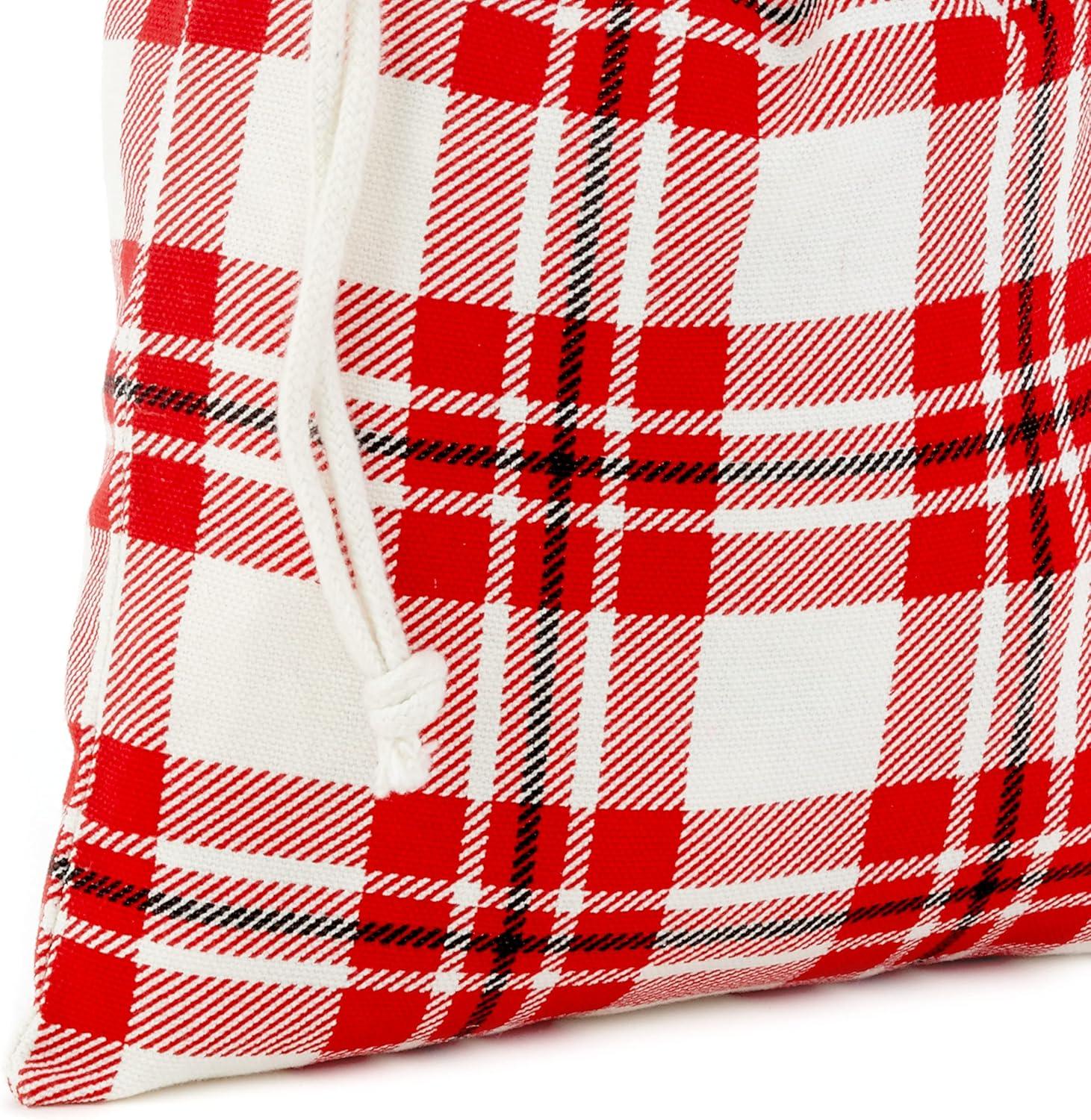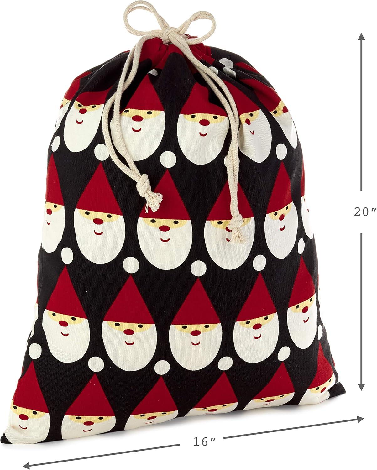 Hallmark Drawstring Christmas Gift Bag Set (2 Fabric Bags with Drawstrings; 1 Medium 10″, 1 Extra Large 20″) Santa, Red and White Stripe, 5XGB4902(Black and red)