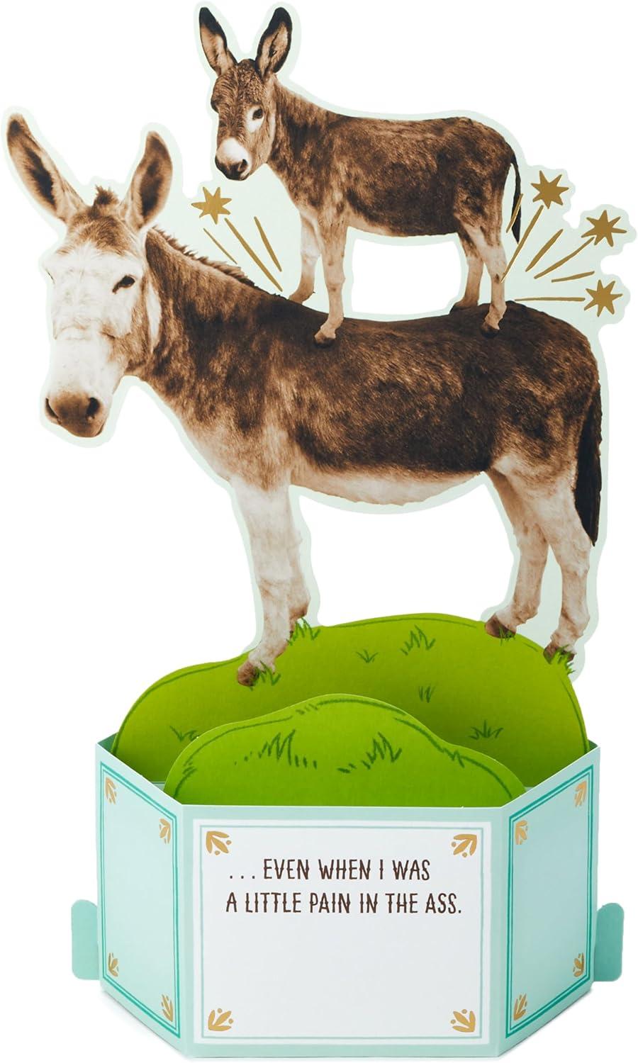 Hallmark Funny Pop Up Birthday Card from Son or Daughter (Donkeys, Pain in the…) Paper Wonder Shoebox 3D Card(Donkeys Pain in the . . .)