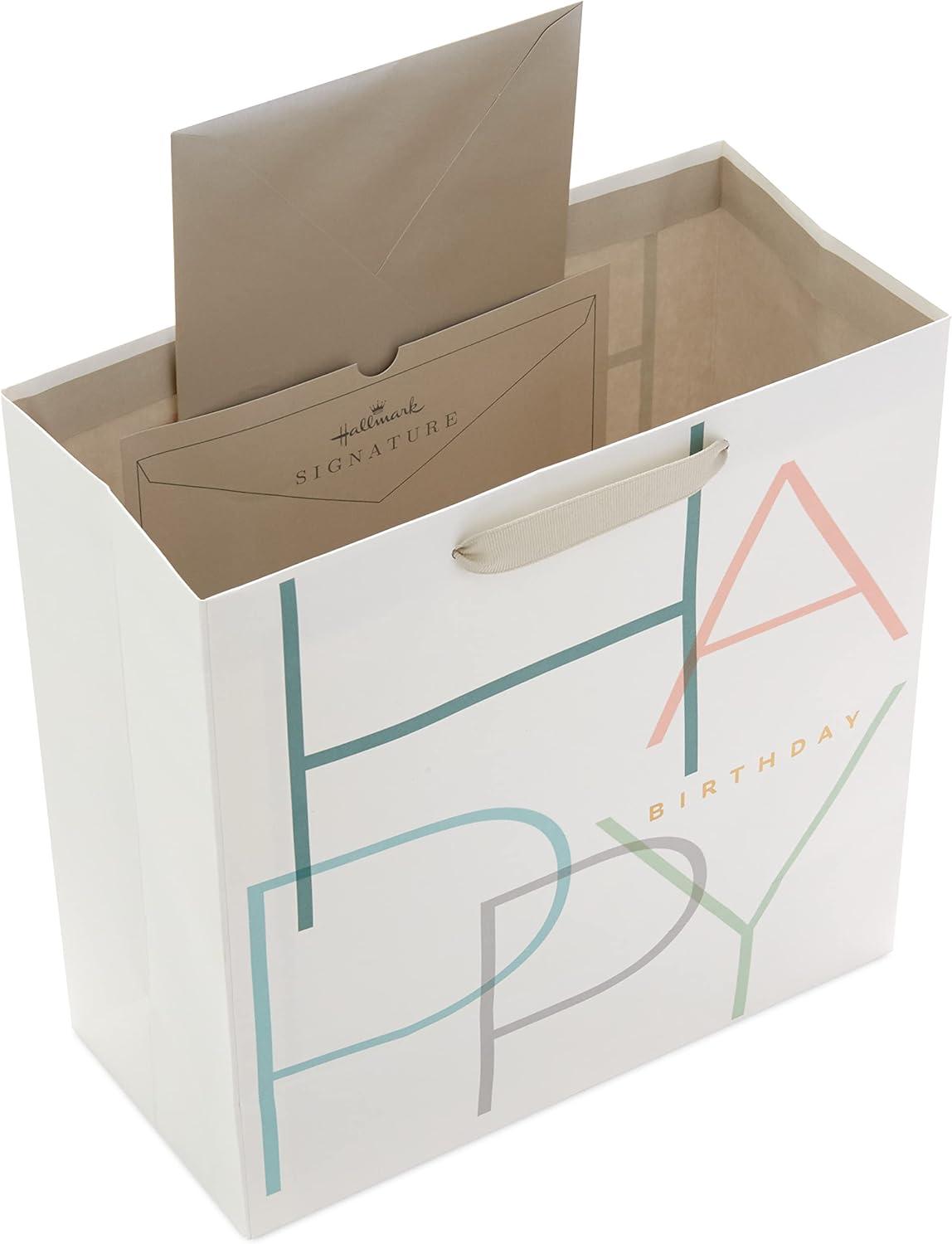 Hallmark 13″ Large Gift Bag with Tissue Paper (Bright Cake) for Birthdays, Parties and More(Minimal Teal Gray Pink Blue)